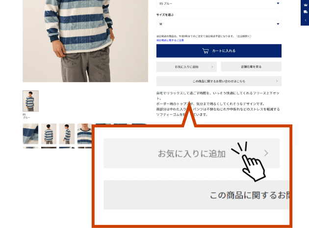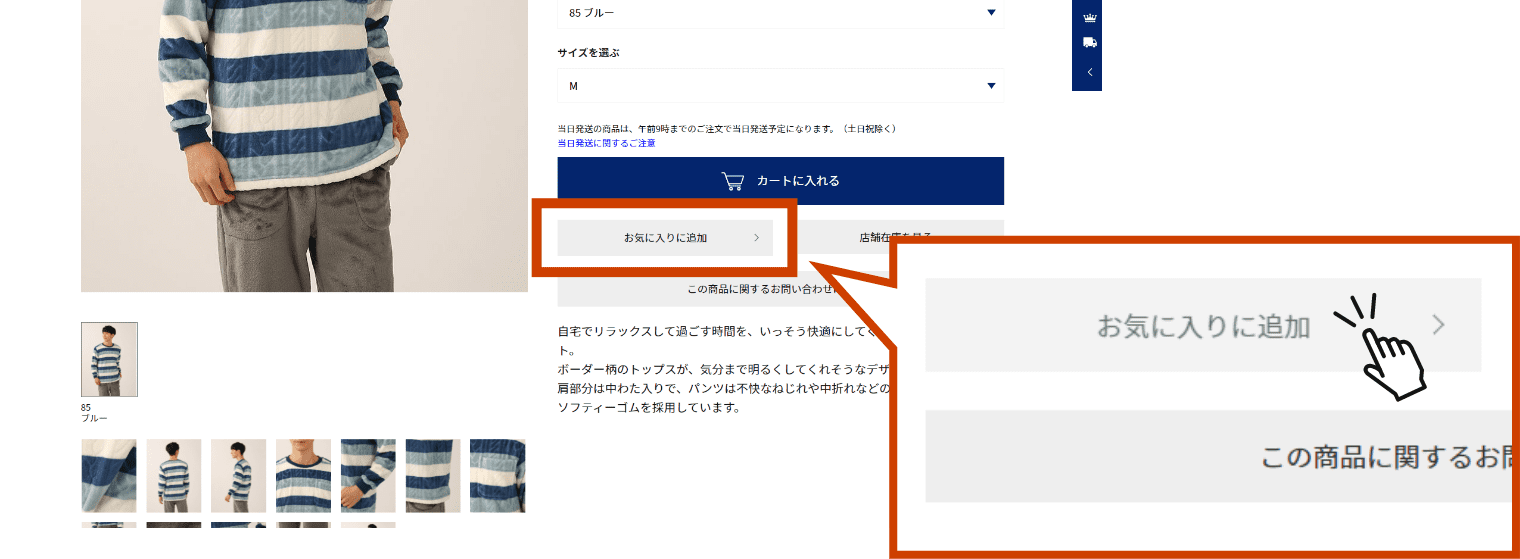 商品詳細ページの「お気に入り追加」をクリックするだけ!