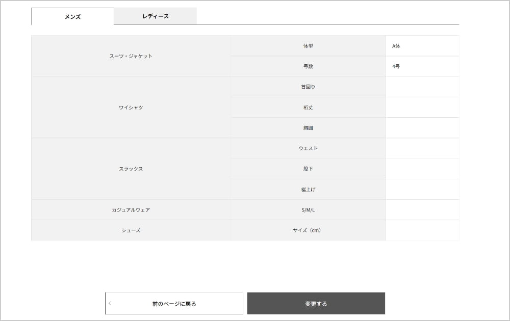 また登録後に変更したい場合もマイサイズ画面から簡単に変更できます。