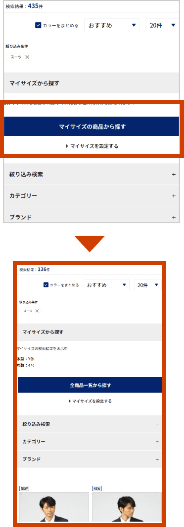 一度登録しておくとお客様のサイズに合った商品を簡単に絞り込める便利な機能です!
