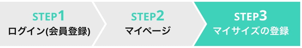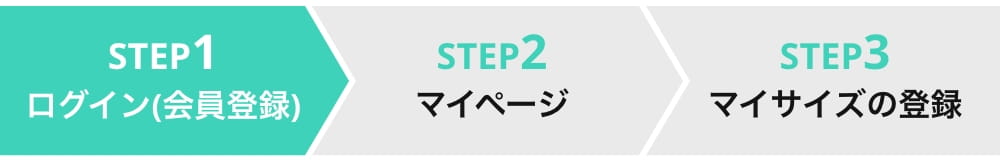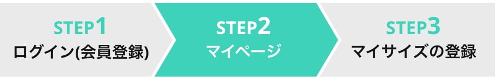 会員登録が完了しましたらサイト上部にありますメニューより「マイサイズ」のボタンをクリックしてマイページに進んでください。