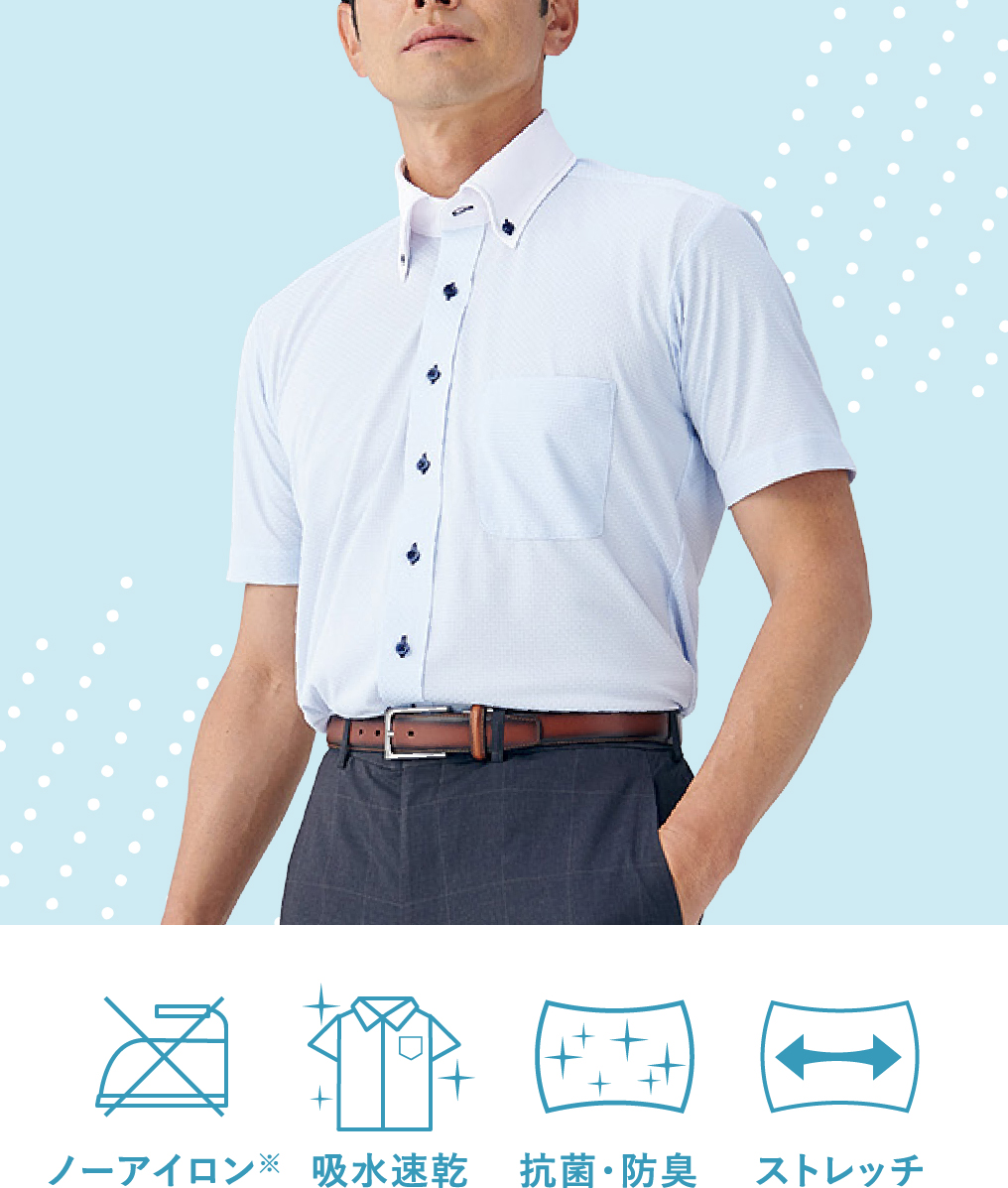 ※アイシャツは、新合繊の素材のニット製品につき、アイロン掛けを避けるよう推奨しています。耐洗濯性で形態安定性(アパレル製品等品質性能対策協議会規定のW&W性)の最高水準の5級をクリアした生地を使用しています。検査結果は、判定用生地を用い日本工業規格(JIS L 1930 C4M 法 タンブル乾燥)に基づいて試験し、1~5級の等級づけをしたもの。形態安定性5級・1回洗濯。