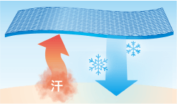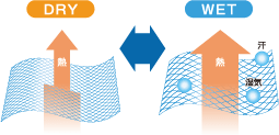 WETDRY熱熱汗湿気運動により体から放出された汗を吸収し、網目が開きます。