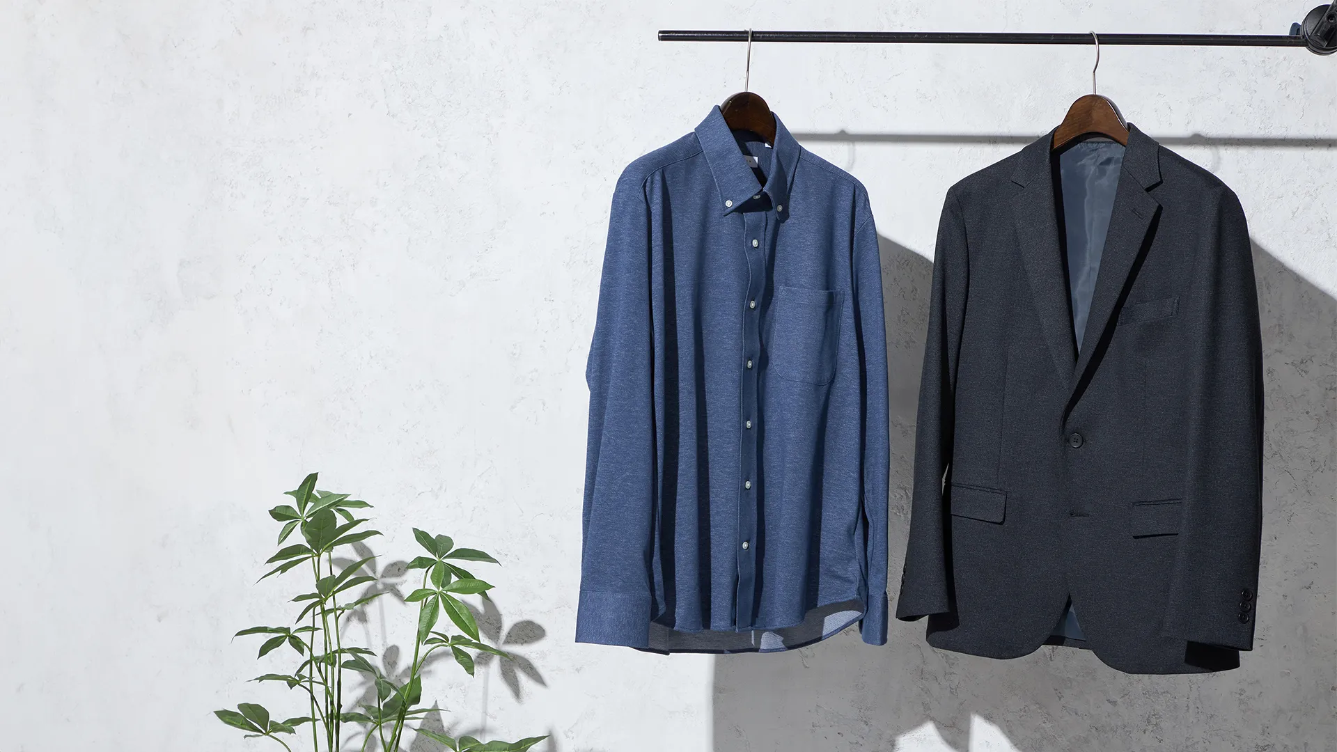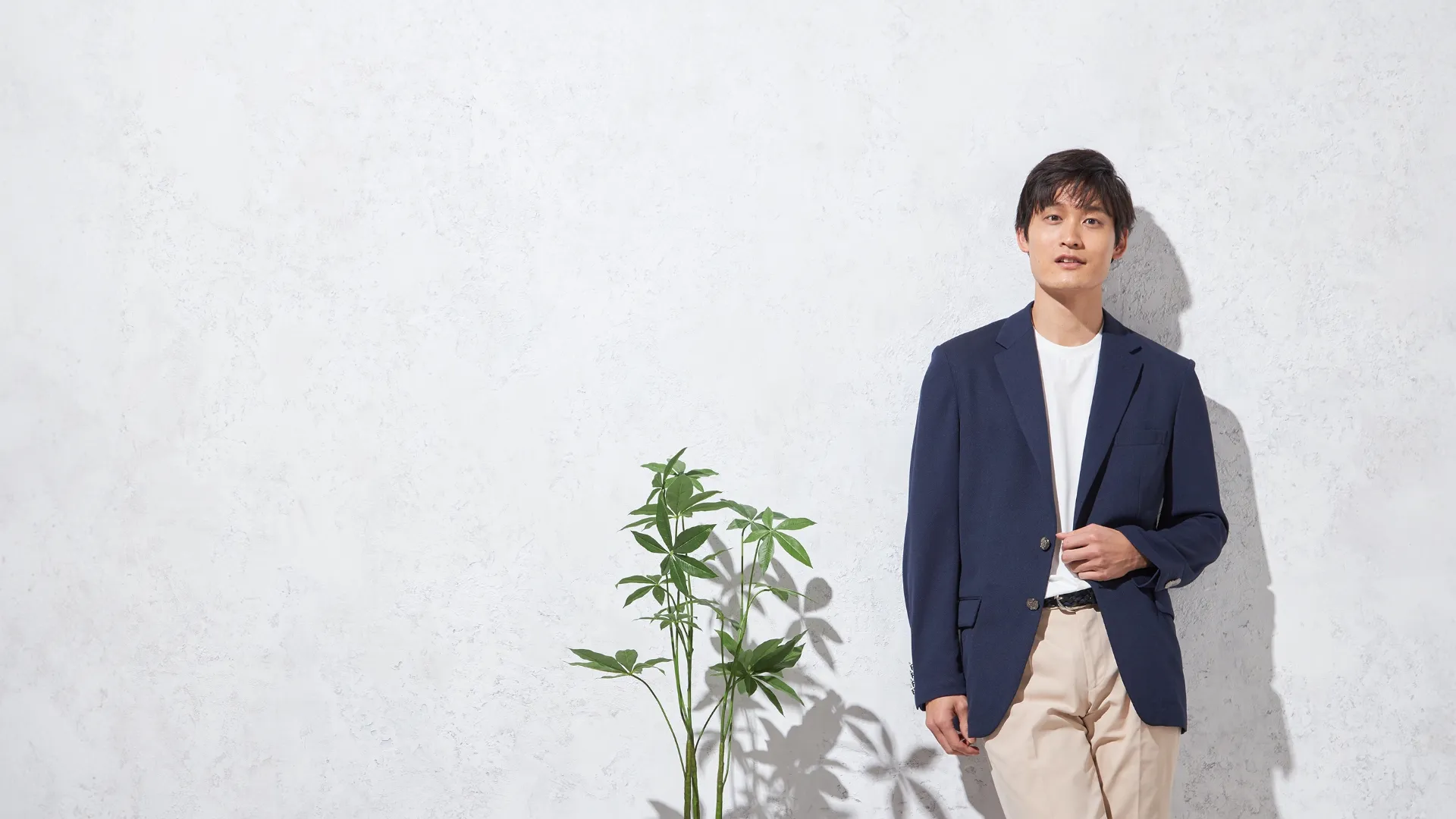 涼やかさと動きやすさを両立しつつ、ジャケットはやや細身に、パンツはすっきりとしたテーパードラインにすることで、モダンな着こなしを楽しめます。