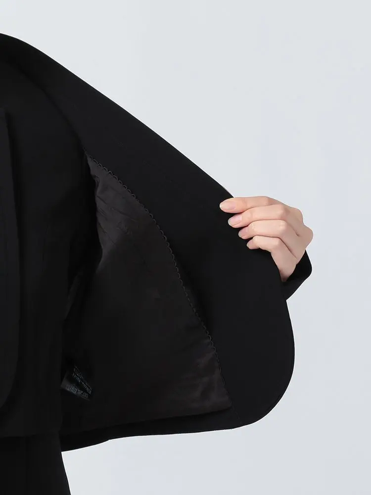 【ウォッシャブル】フォーマルジャケット/トップス/パンツ3点セットストレッチ黒無地通年【レディース】