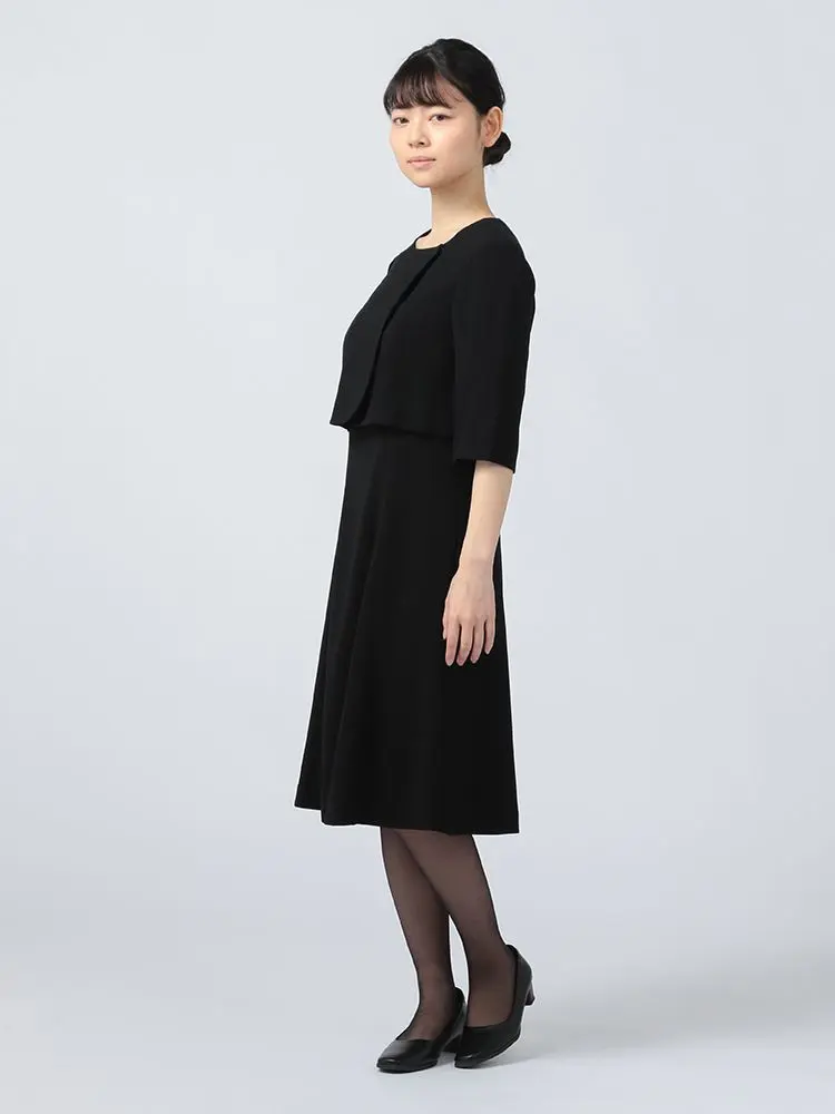【ストレッチ】フォーマルアンサンブルジャケットワンピース黒無地YUMIKATSURAEnForm通年【レディース】