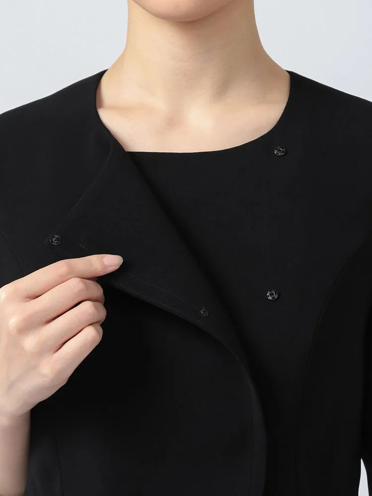 【ウォッシャブル】フォーマルジャケット/前開きレース衿ワンピースアンサンブルストレッチ黒無地STOVEL&MASONWHITE通年【レディース】