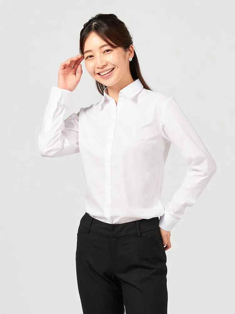【形態安定】ブラウス長袖Gracefield白ブロードレギュラーカラー無地リクルート通年【レディース】