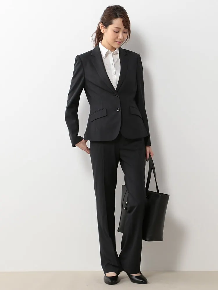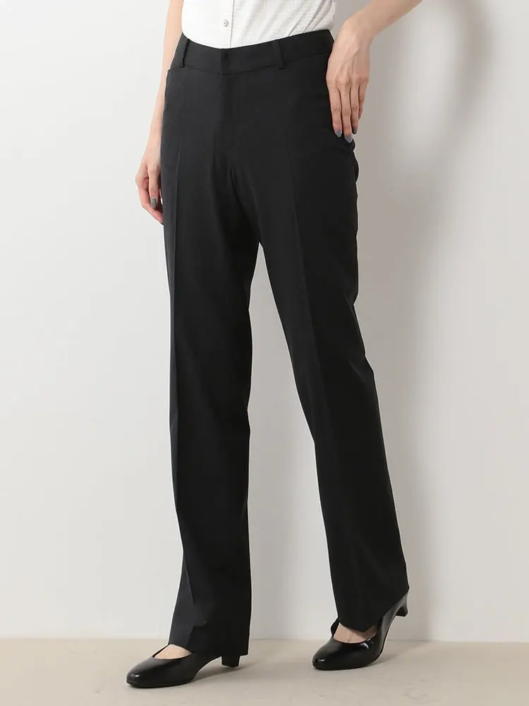 【ウォッシャブル】パンツストレートストレッチ黒無地S&MKnightsbridge通年【レディース】
