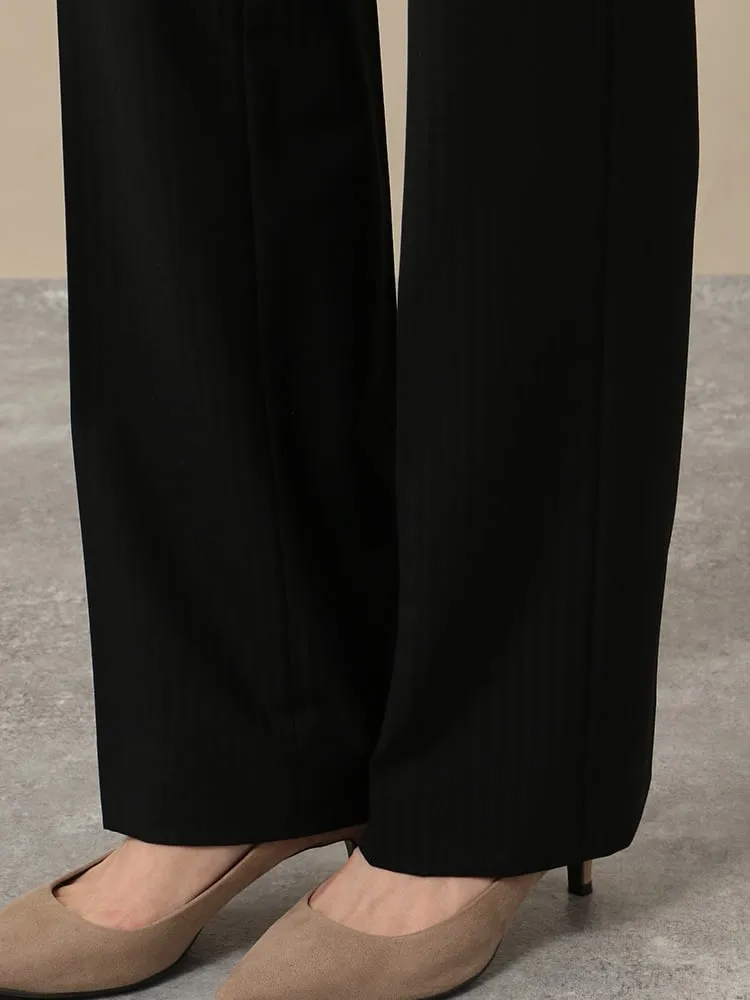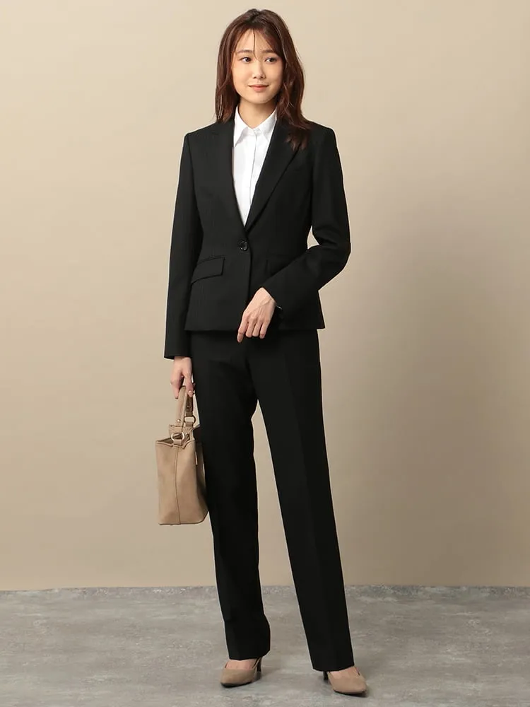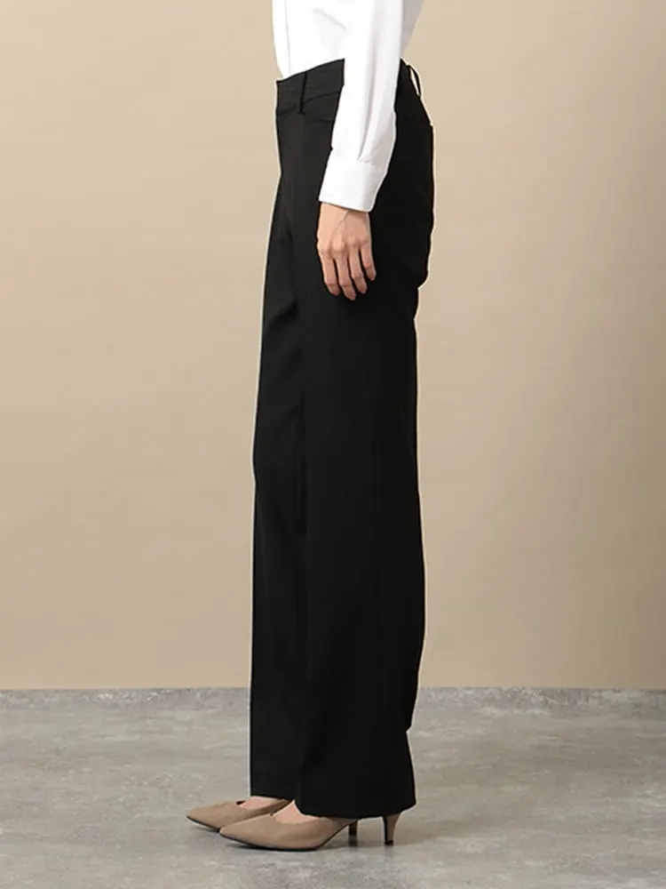 ストレートパンツ with 黒シャドーストライプ ウォッシャブル 2WAYストレッチ【レディース】