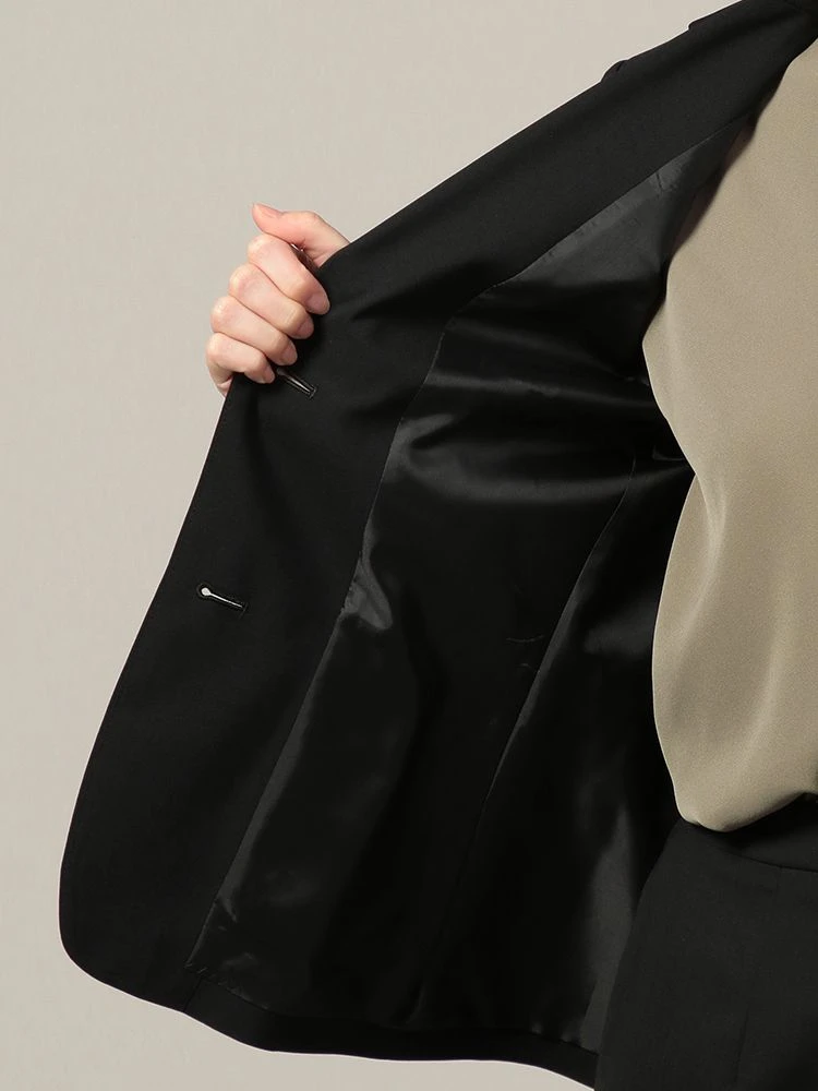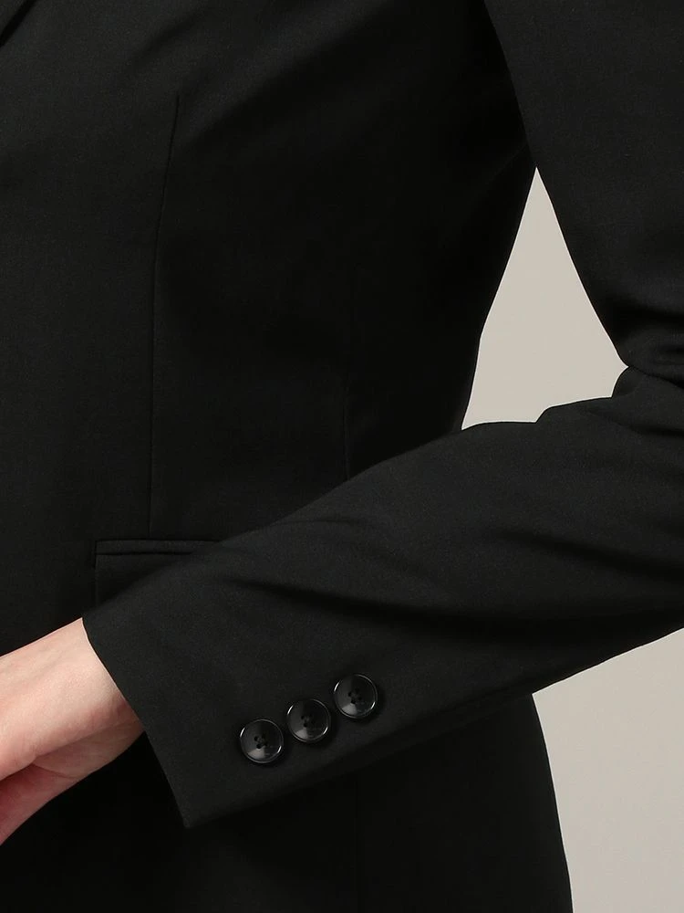2つボタンのデザインで、クラシックなスタイルを演出。落ち着きと品のあるアイテムです。