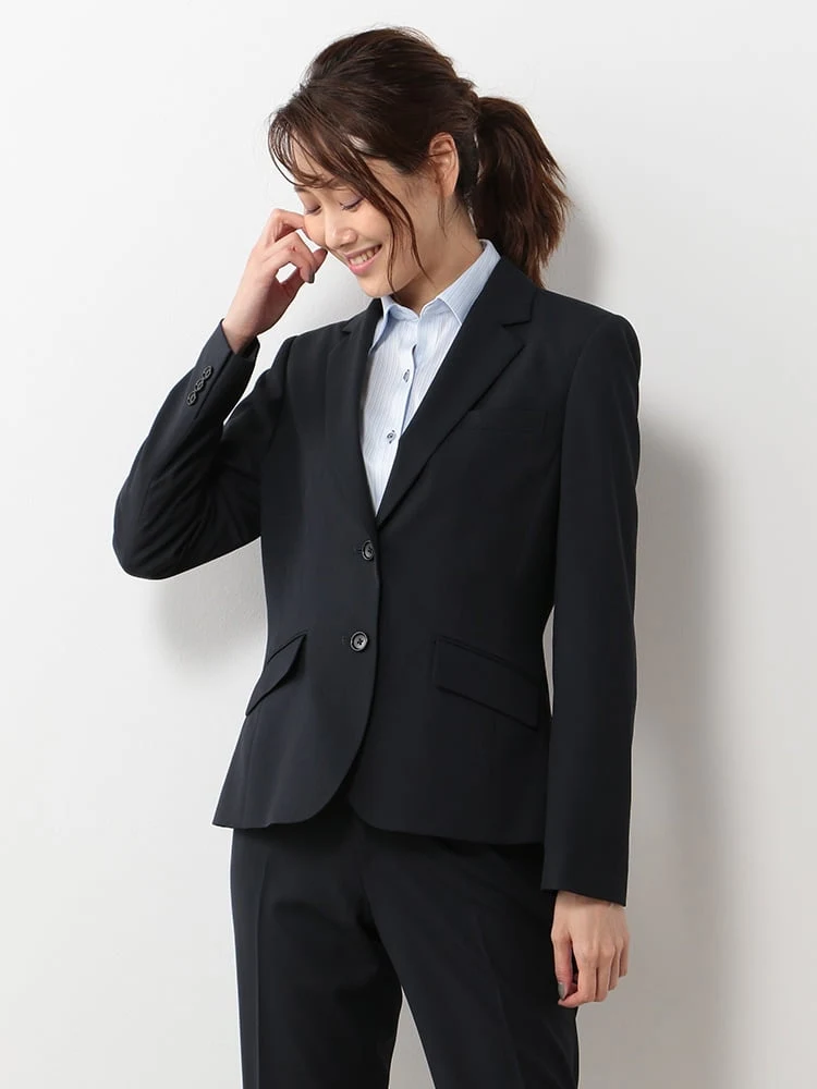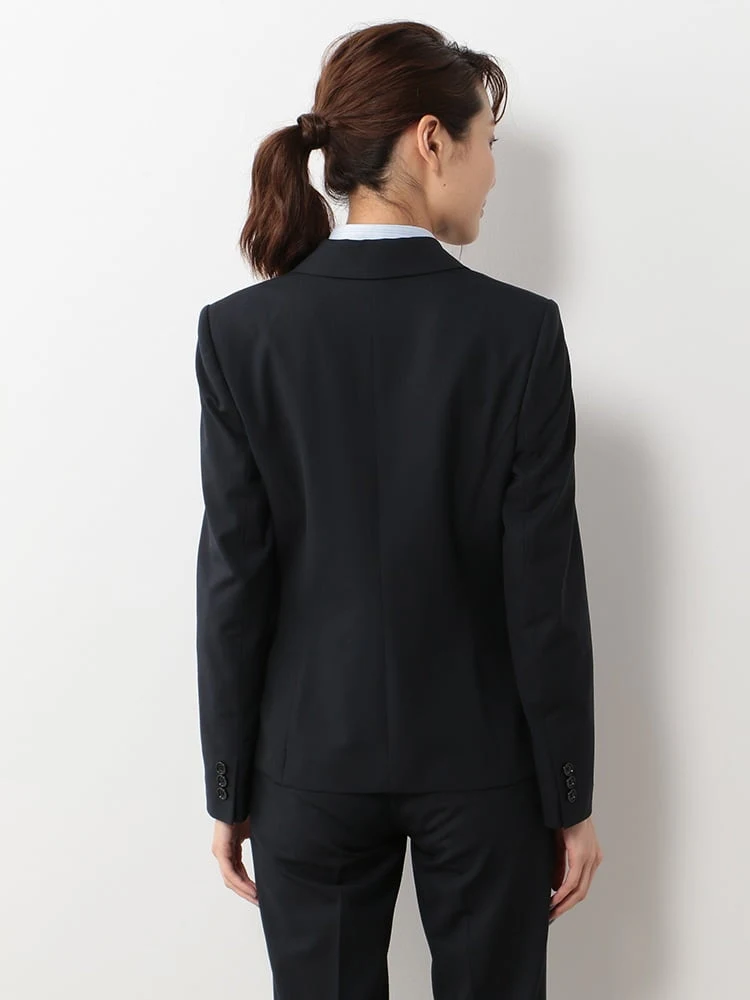 デイリーの通勤に取り入れやすい、ネイビーのテーラードジャケットです。