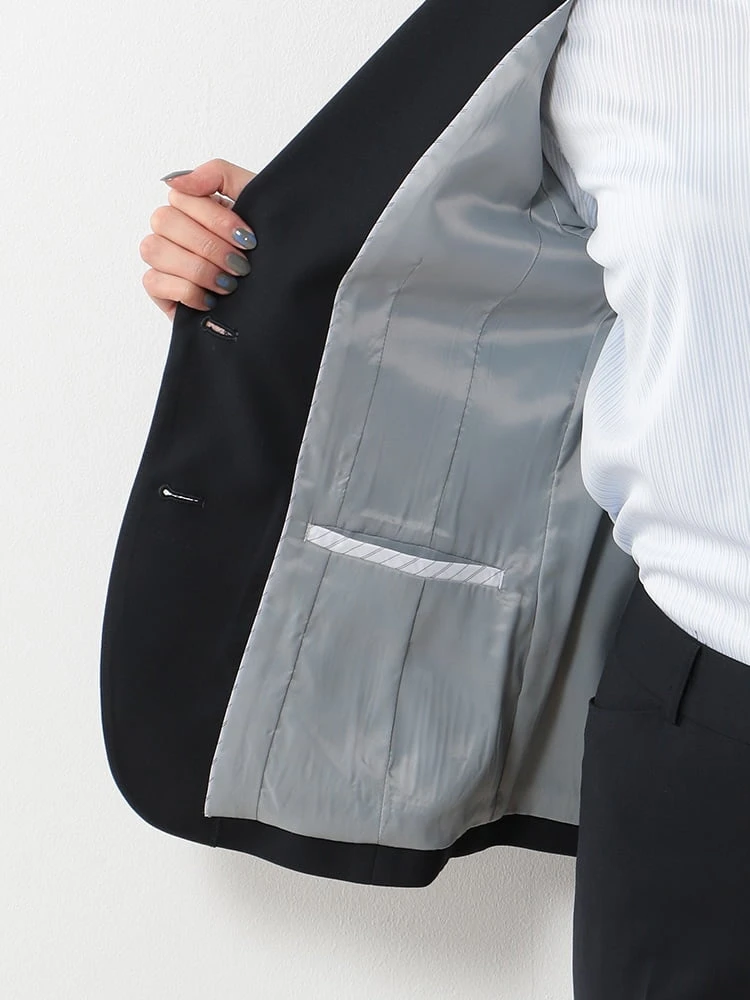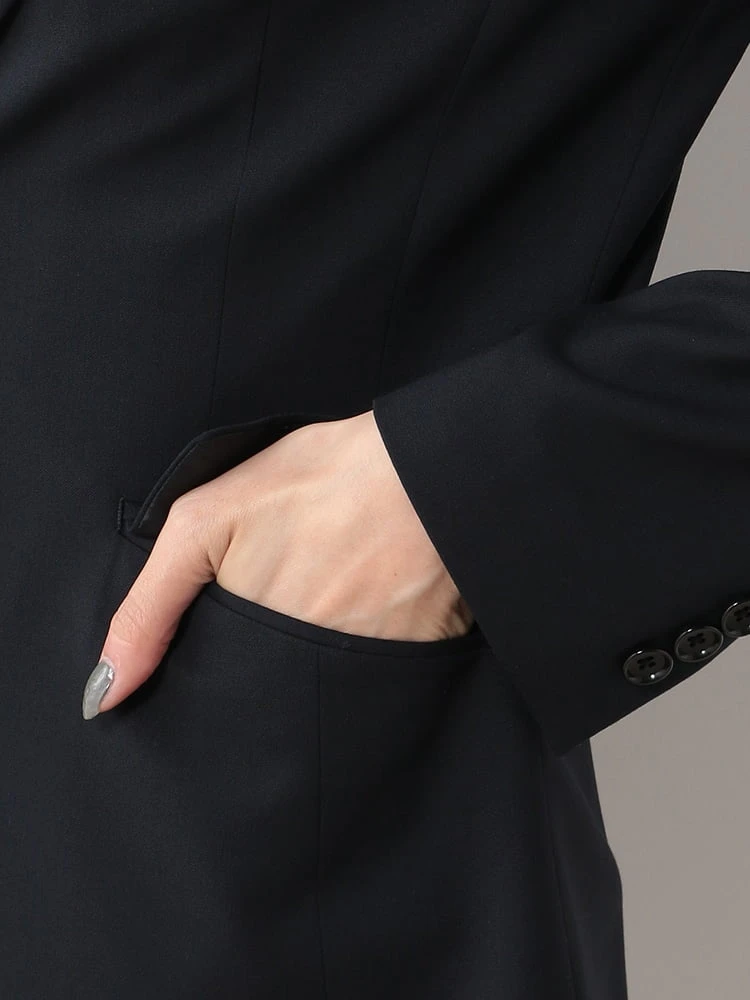 1つボタンのデザインで、シンプルかつスタイリッシュな印象を与えます。洗練されたシルエットが特徴です。