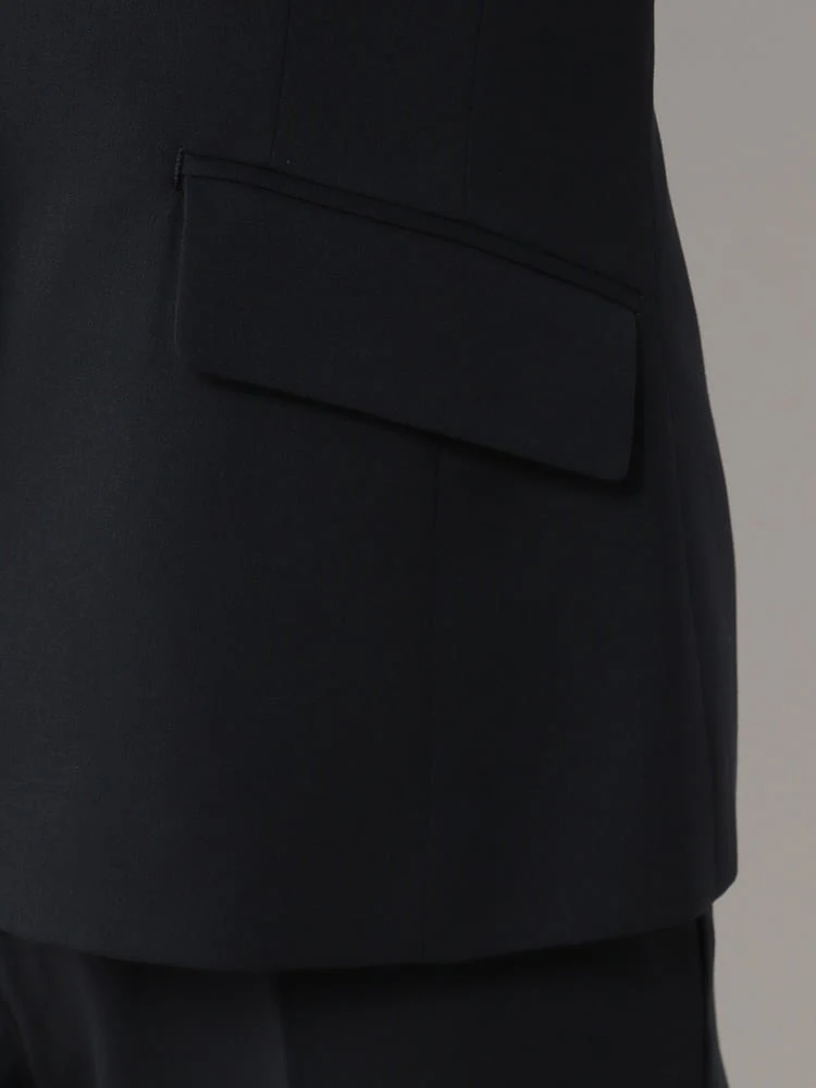 ベーシックな2ボタンタイプで、斜めに施したフラップポケットがアクセント。