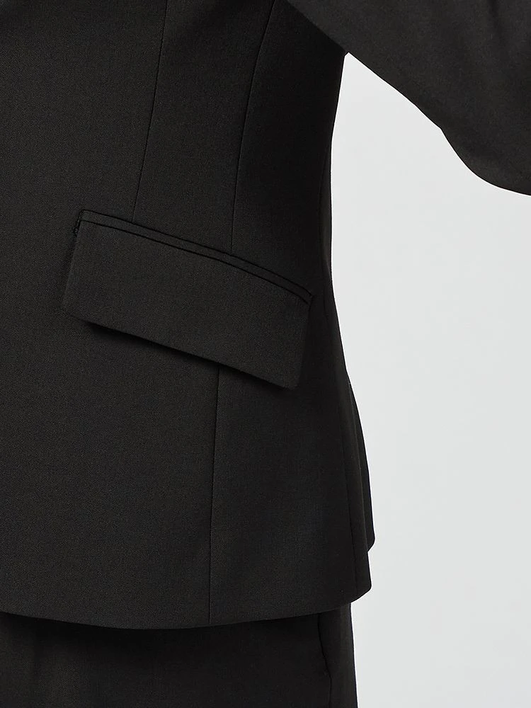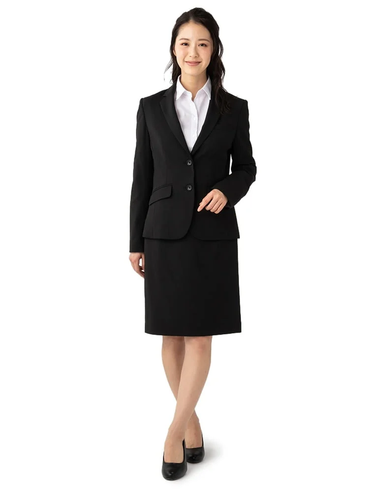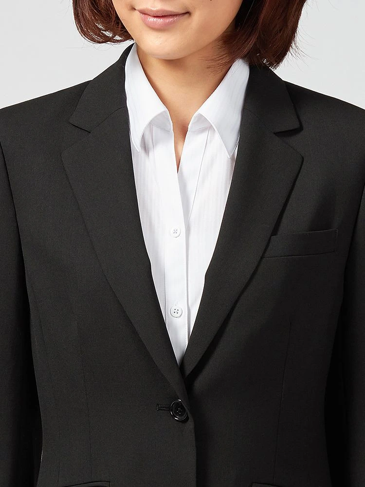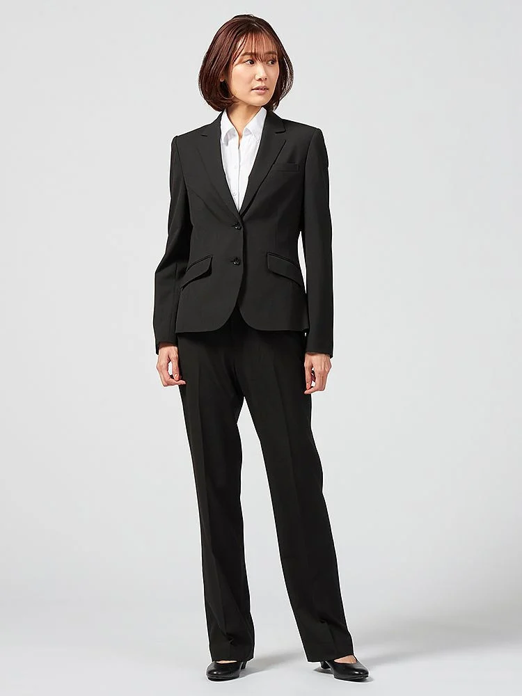 【ウォッシャブル】ジャケット2つボタンストレッチブラック無地通年【レディース】