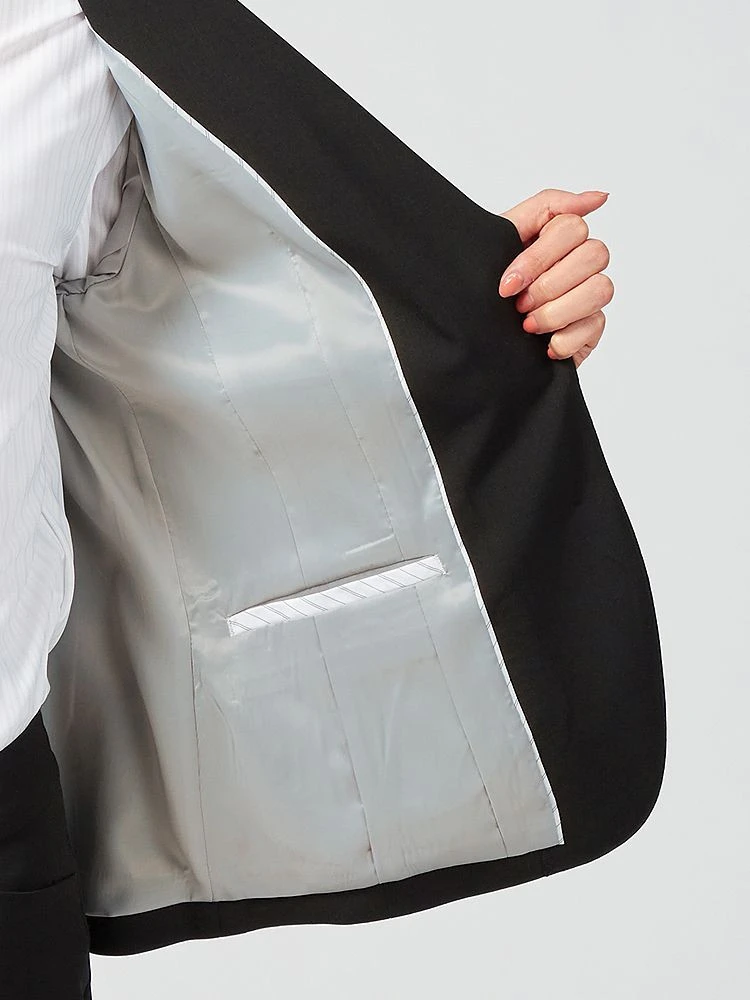 フォーマルシーンにふさわしい微光沢のあるしっかりとした生地感です。