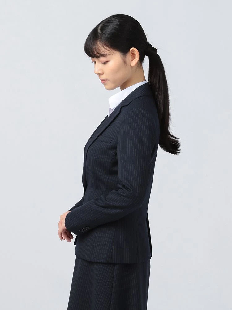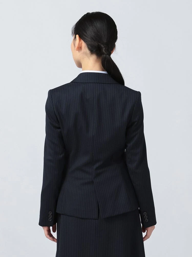 大人の女性らしい洗練されたシルエットを作り出す、美肩仕様のテーラードジャケット。上品なぬくもりが感じられるウール混生地を使用し、ネイビーを基調にピンストライプを描いています。2WAYストレッチ素材で縦横に伸縮性があり、身体への負担を軽減。裏地にもストレッチ素材を採用し、快適な着心地を叶えました。また気になる臭いを消臭し、ノンストレスの着心地を提供してくれる一着です。合わせるシャツを選ばずにコーディネートしやすく、これからの季節のオフィススタイルで活躍間違いなしです。自宅で洗濯できるウォッシャブル仕様となっており、お手入れが簡単な上に経済的です。
