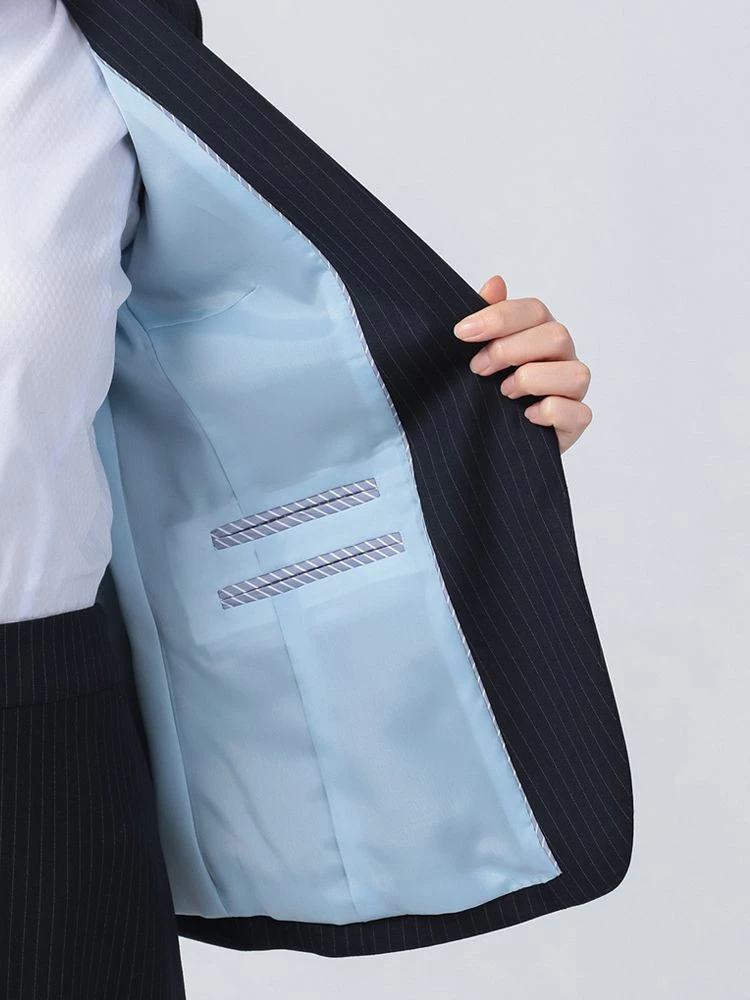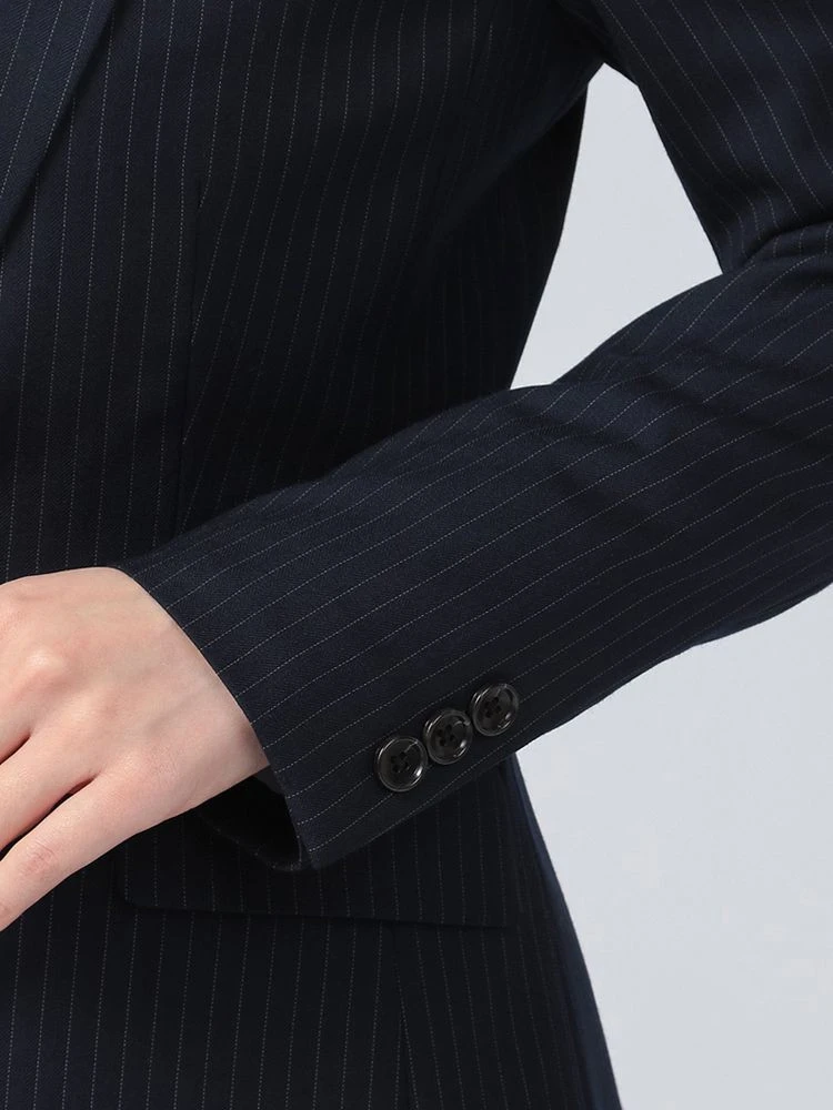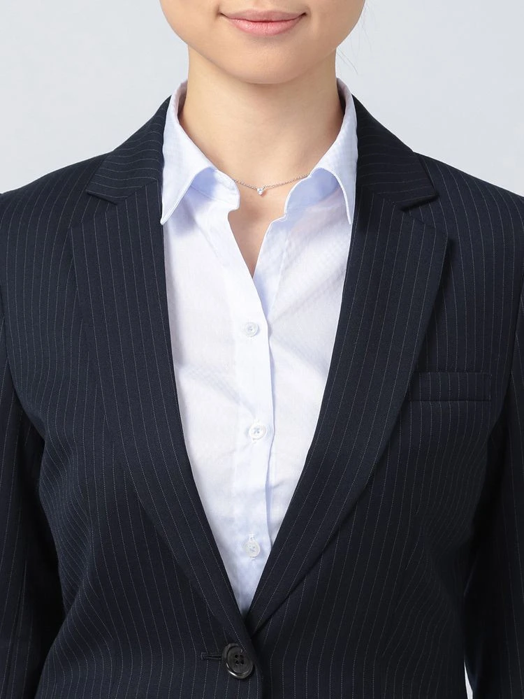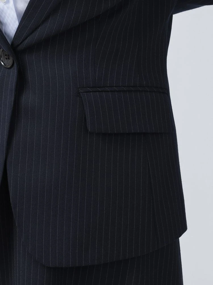 • ウィメンズ ジャケット 通年 オールシーズン ネービー ストライプ ストレッチ 1つボタンジャケット【レディース】 1203811388