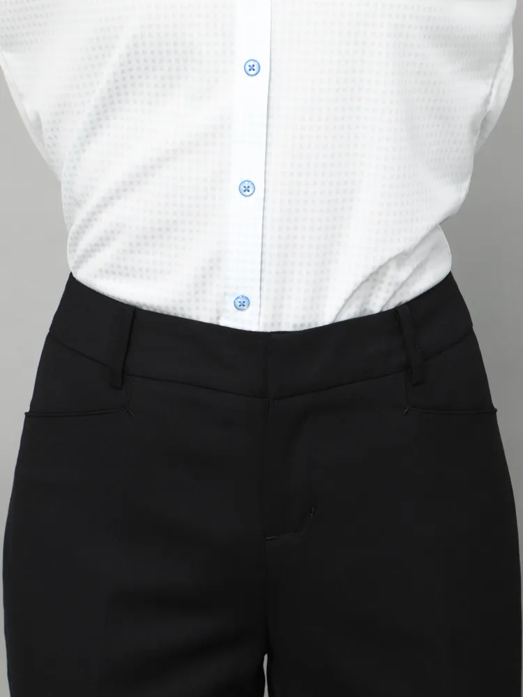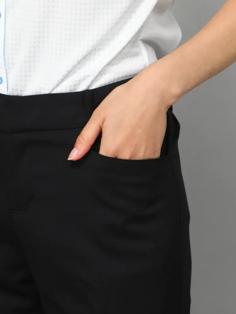 【ウォッシャブル】ウィメンズフルレングスパンツストレッチSOFFICEブラック無地通年【レディース】