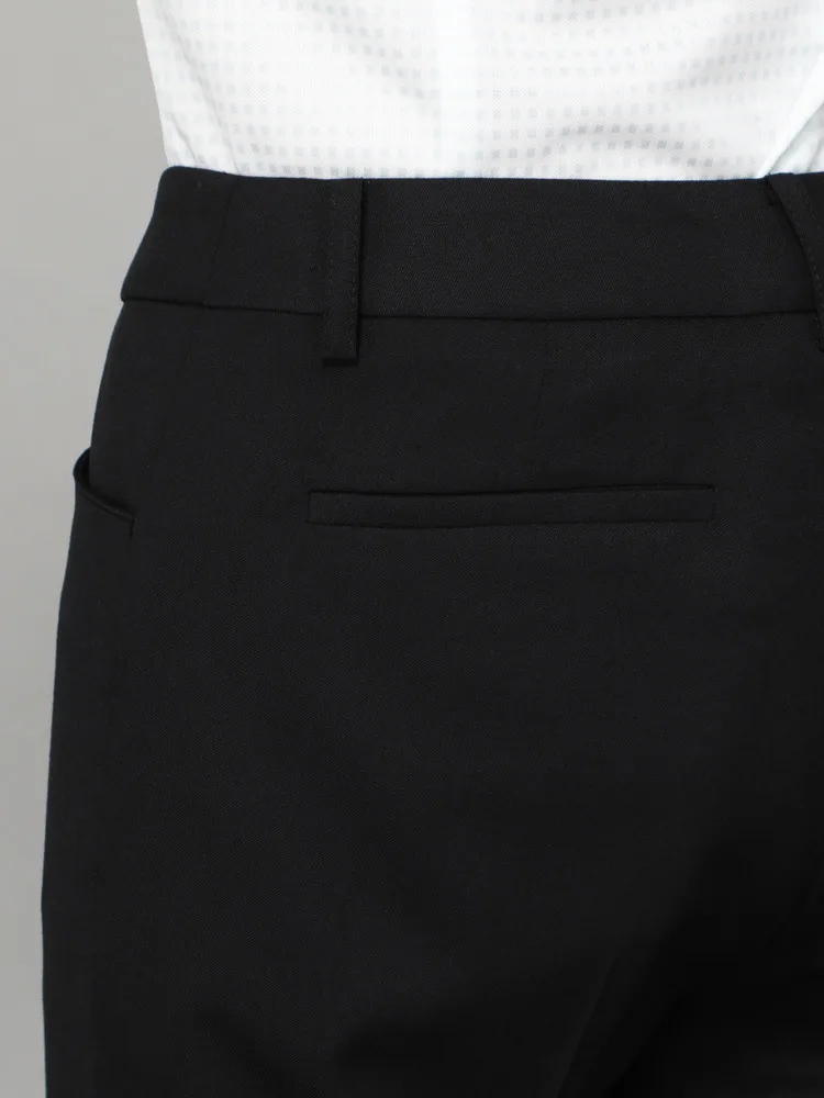 パンツの腰回りに生地の折り込みがなく、スッキリとしたシルエットを実現します。シンプルで洗練された印象を与え、すっきりとした着こなしが可能です。