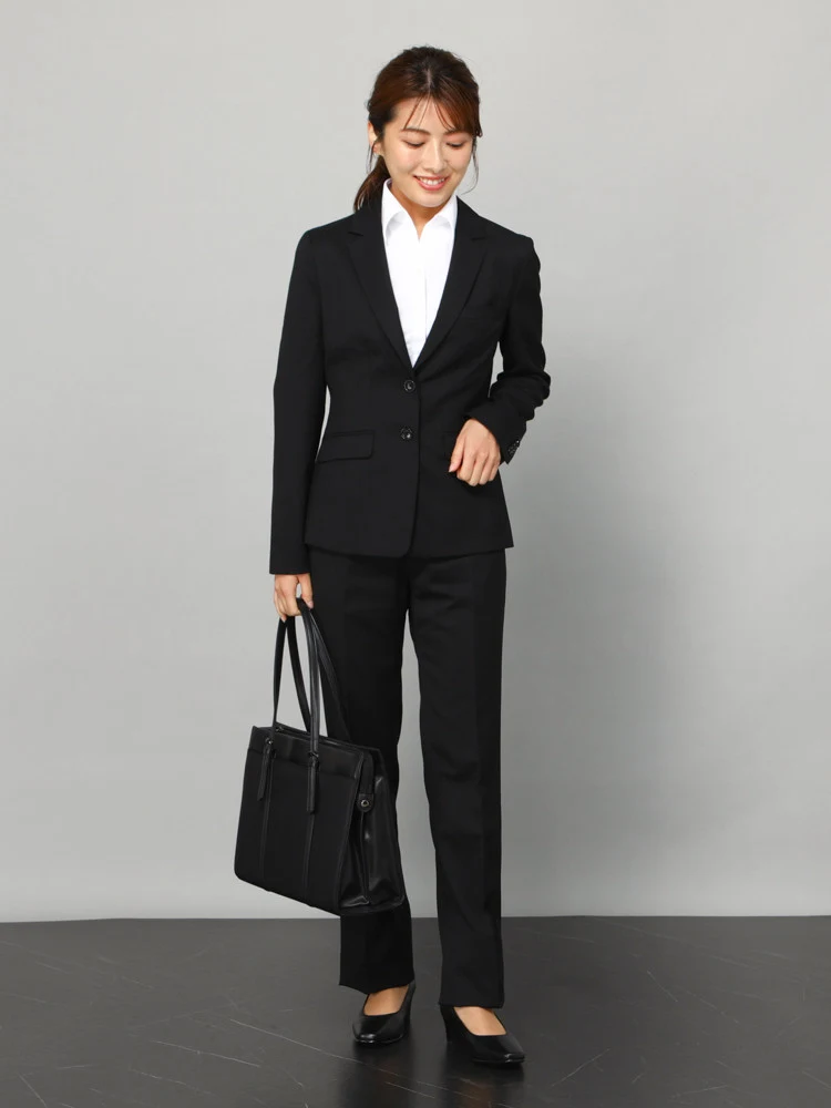 ジャケットは、はるやま独自の立体パターンによる4面体仕上げでメリハリのある美しいシルエットを実現。