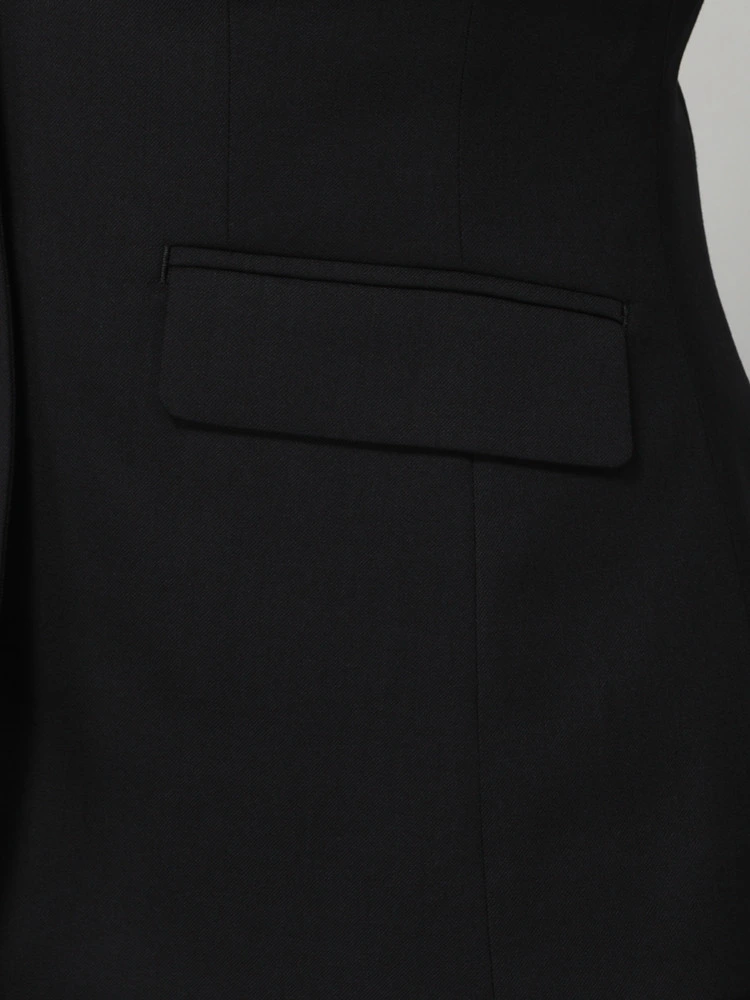 切り込みが1本のセンターベントデザインです。細身でスッキリとしたシルエットが特徴で、快適な着心地を提供します