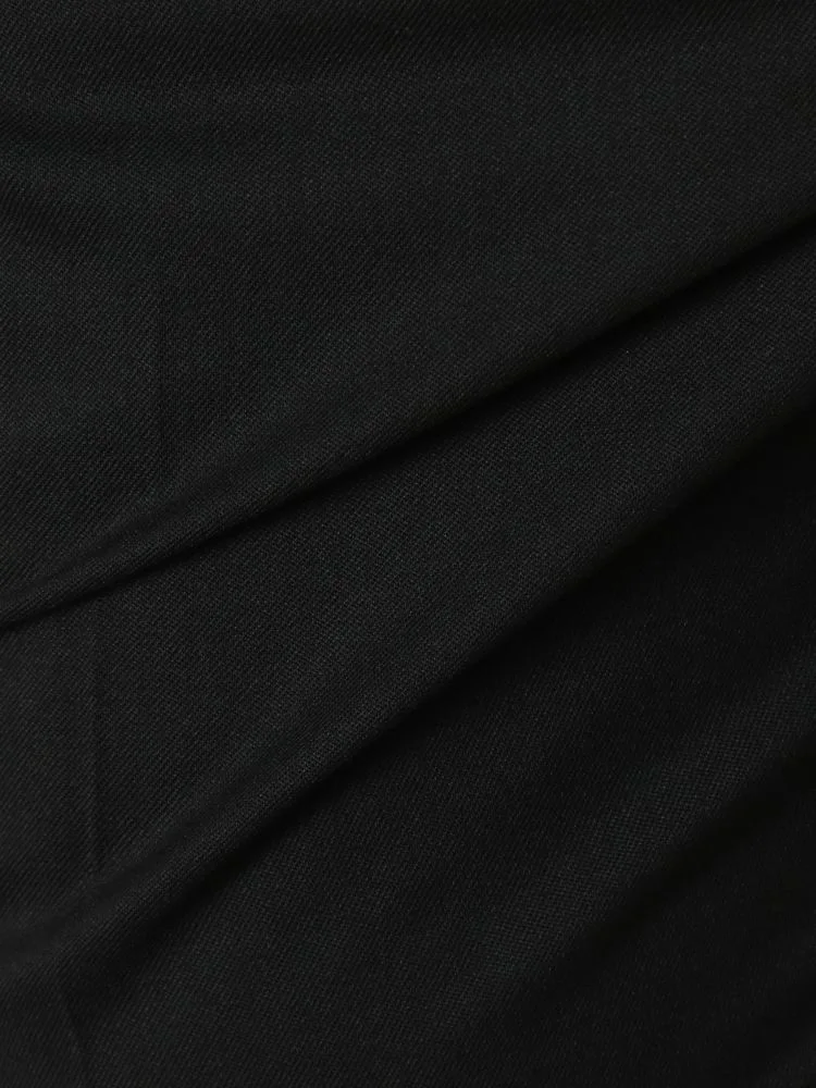 パンツの腰回りに生地の折り込みがなく、スッキリとしたシルエットを実現します。シンプルで洗練された印象を与え、すっきりとした着こなしが可能です。