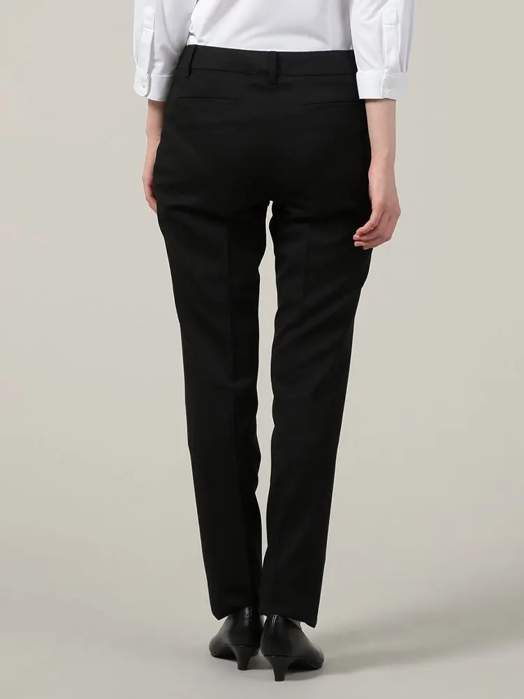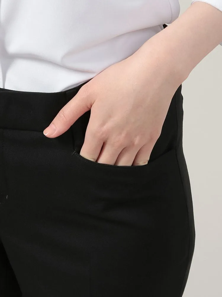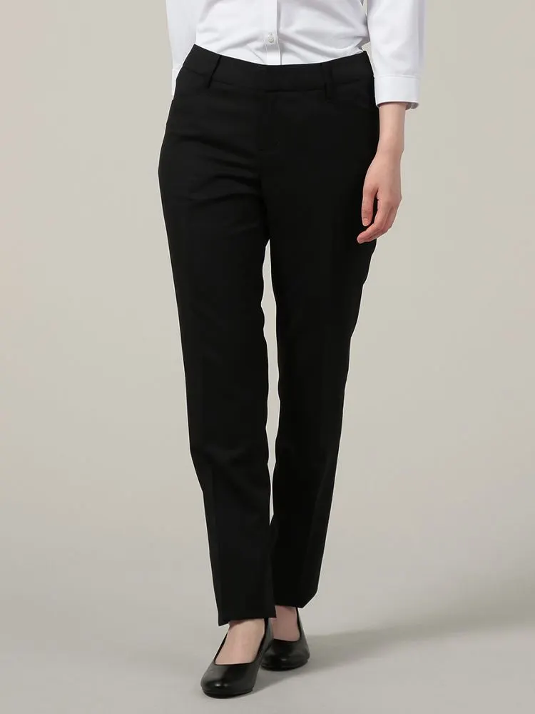 【ウォッシャブル】パンツストレートストレッチ黒無地S&MKnightsbridge通年【レディース】