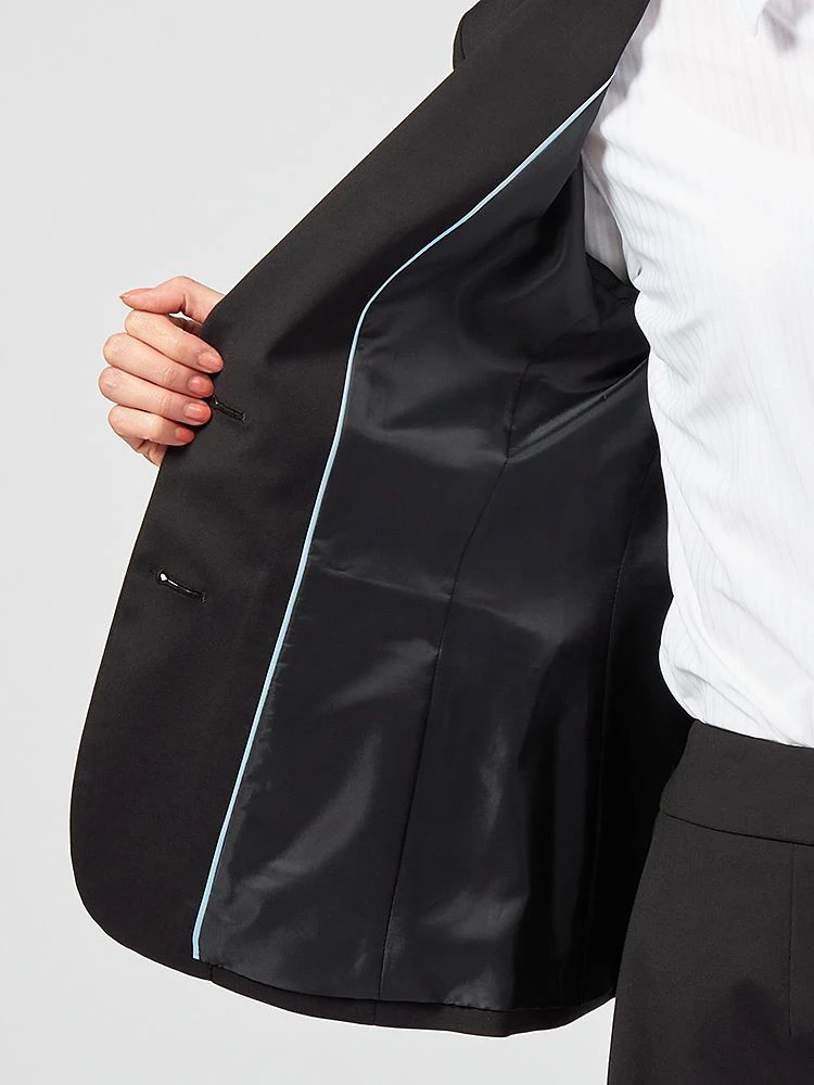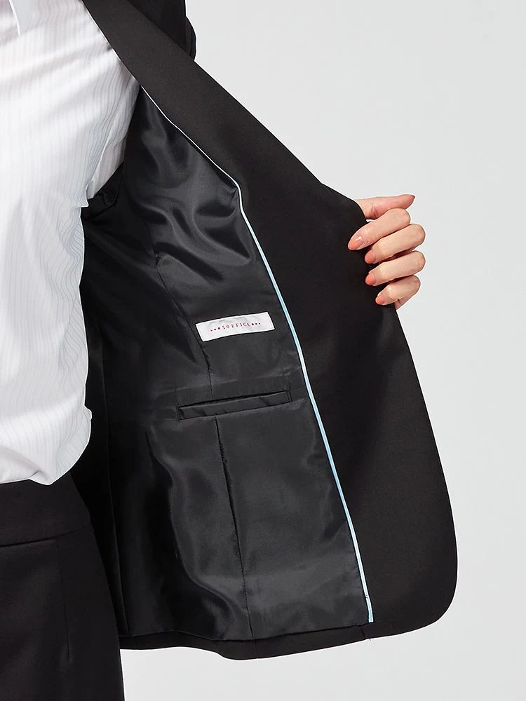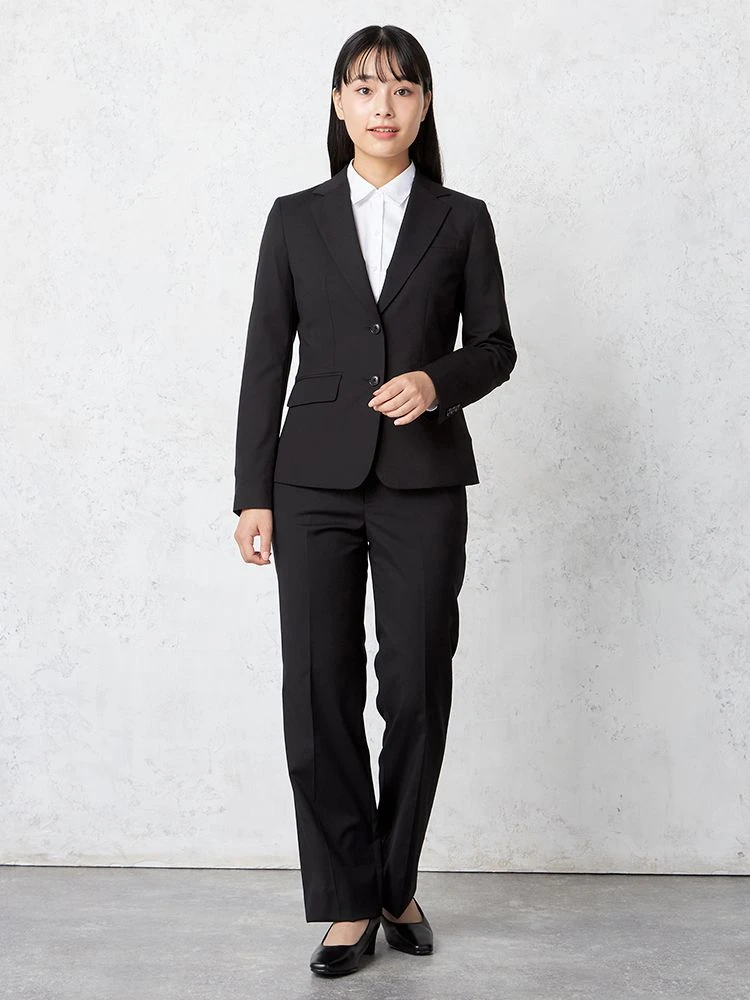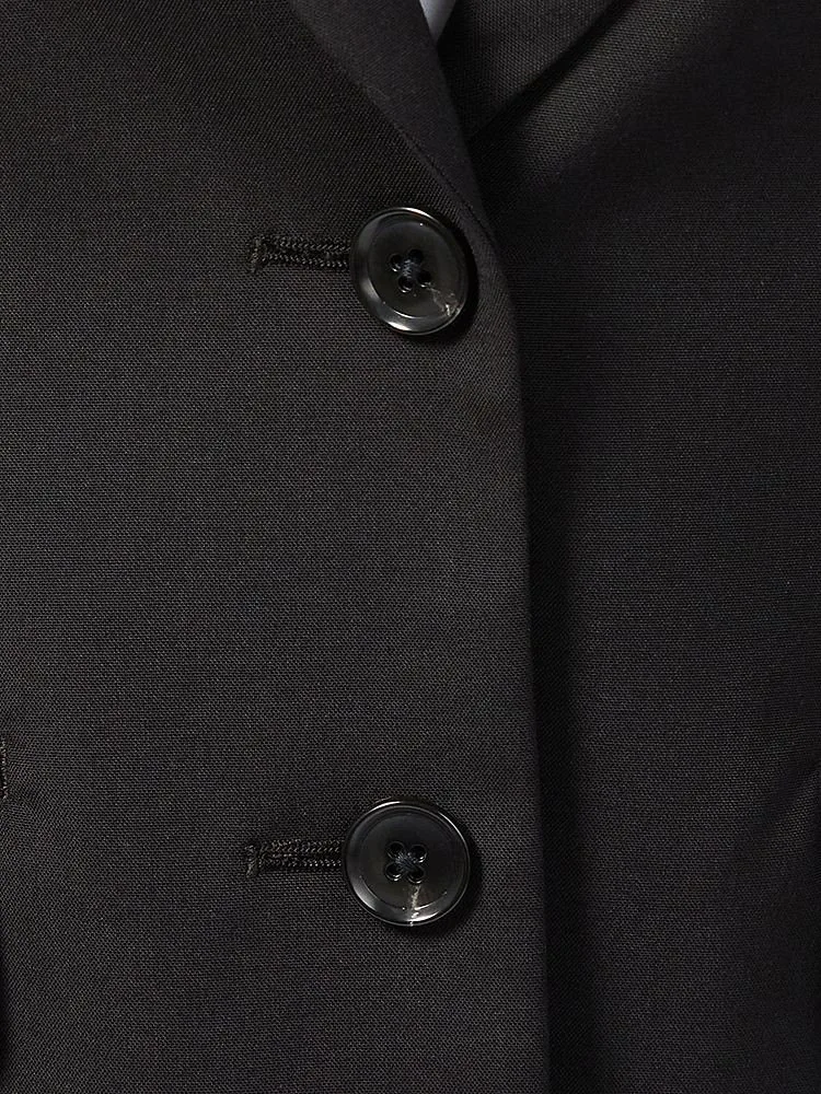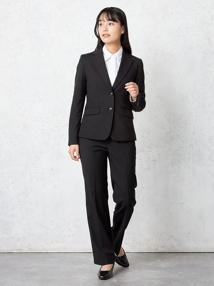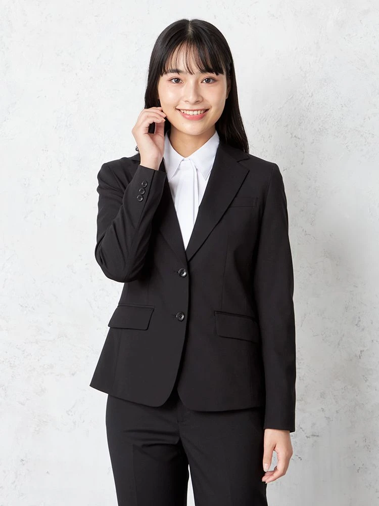 すっきりとした仕上がりを叶えるブラック無地の2つ釦ジャケット。