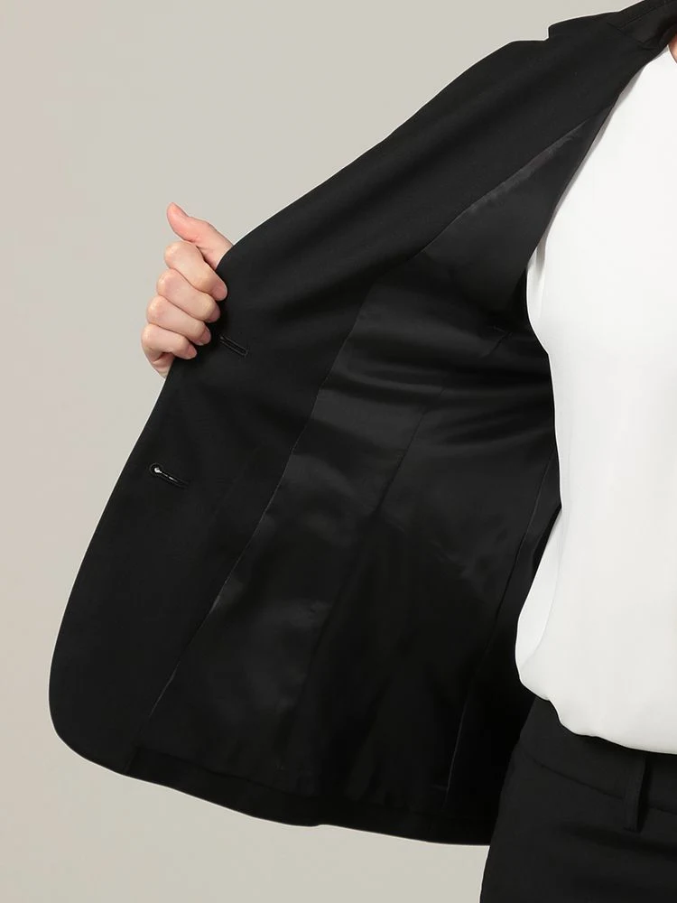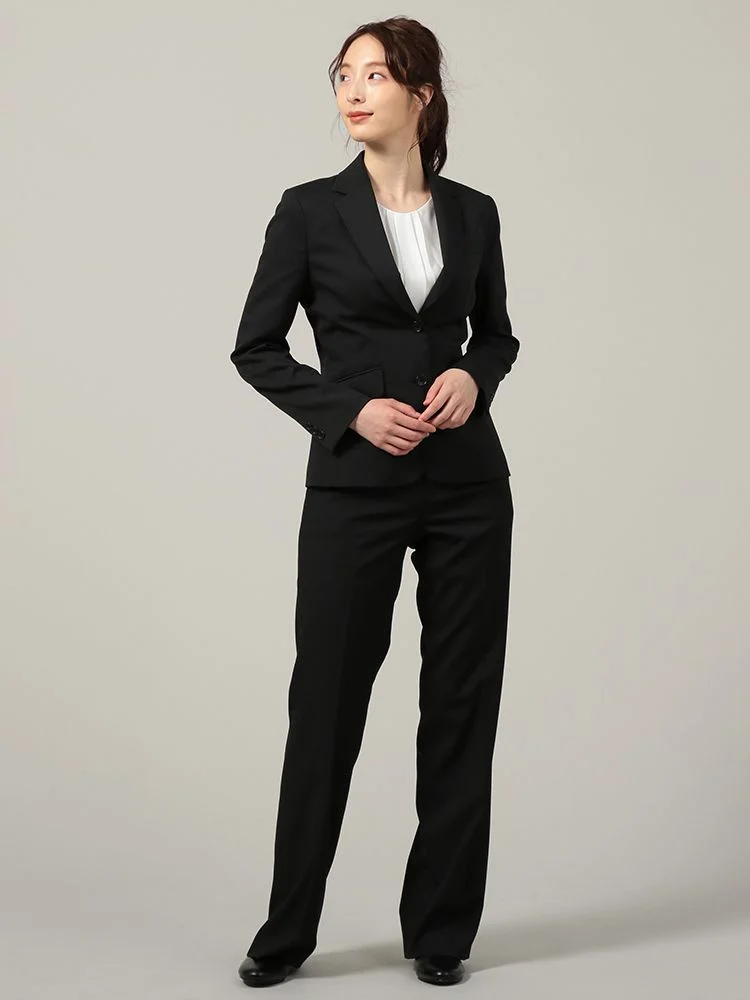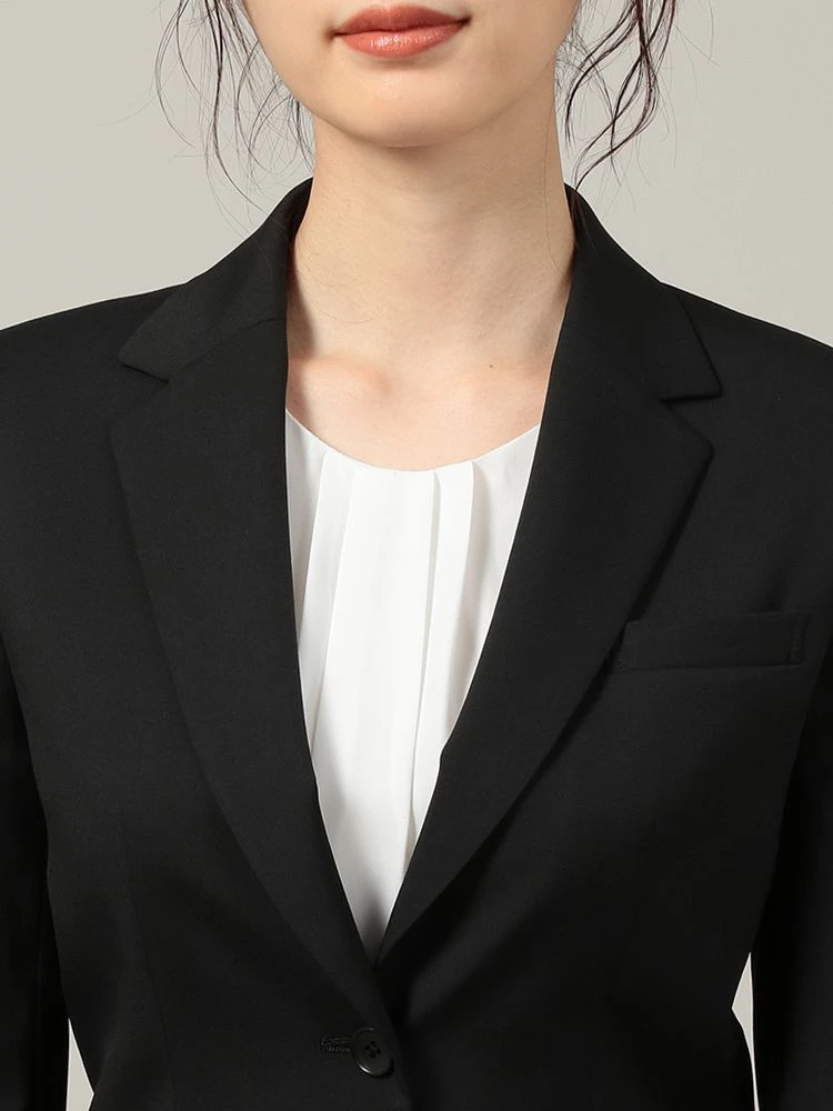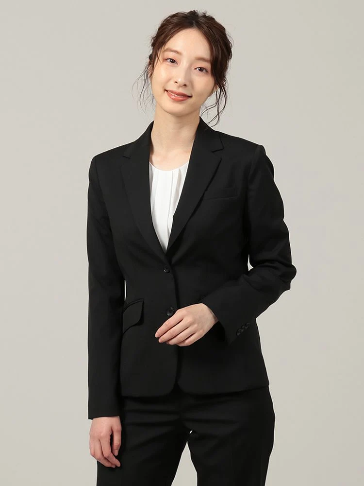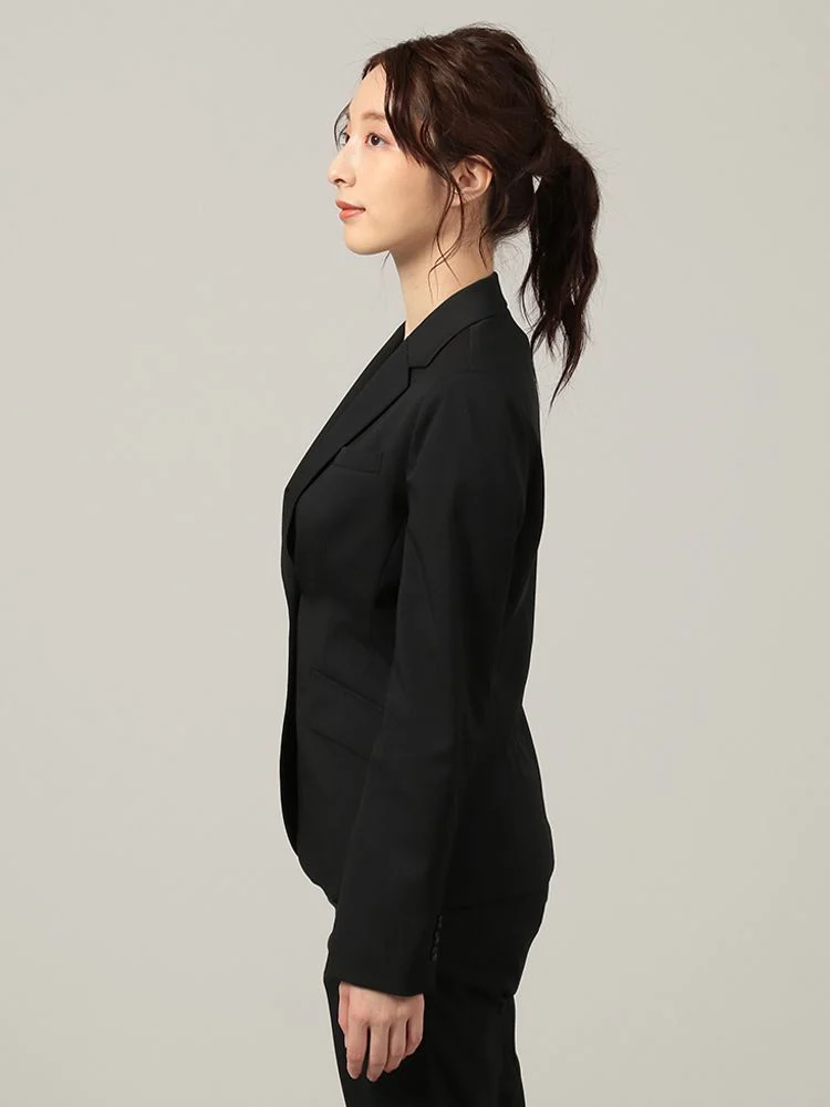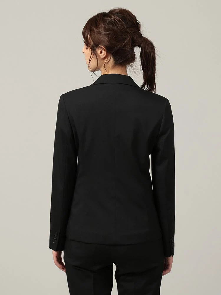 【ウォッシャブル】ジャケット2つボタンストレッチブラック無地通年【レディース】