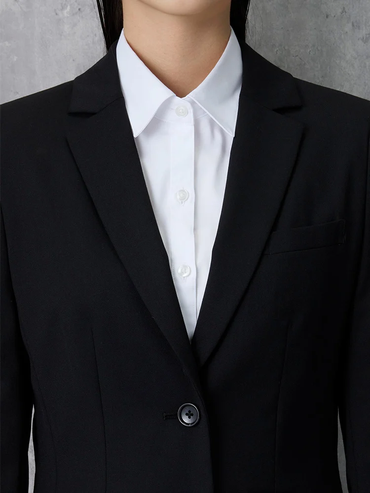 切り込みが1本のセンターベントデザインです。細身でスッキリとしたシルエットが特徴で、快適な着心地を提供します