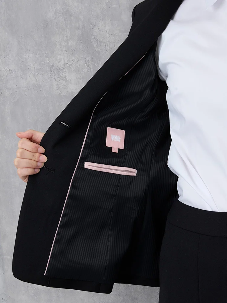 2つボタンのデザインで、クラシックなスタイルを演出。落ち着きと品のあるアイテムです。