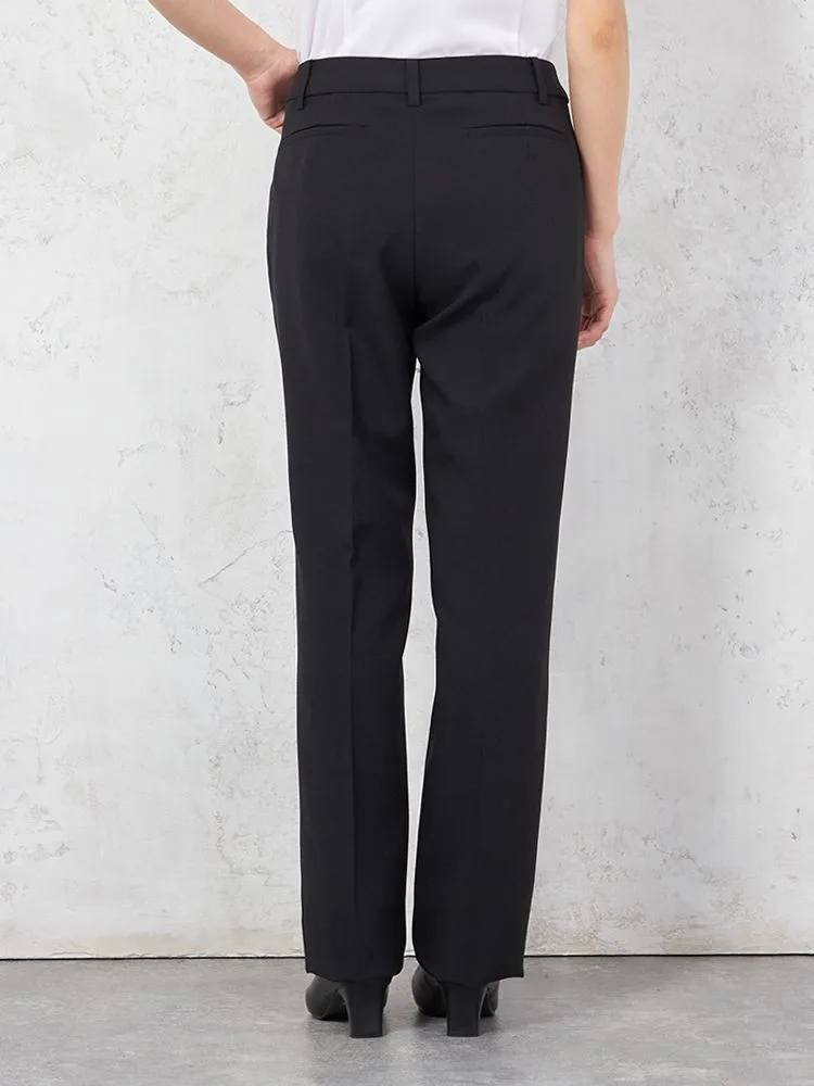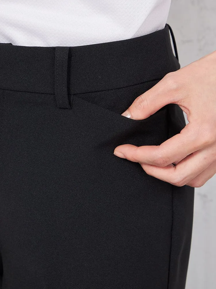 【ウォッシャブル】パンツストレートストレッチ黒無地S&MKnightsbridge通年【レディース】