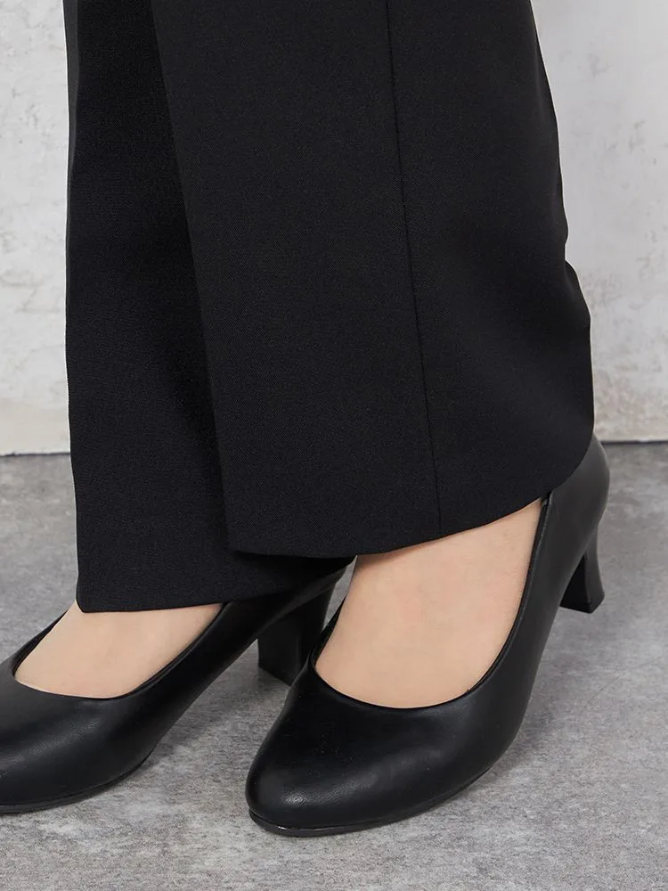 汎用性の高い、シンプルなブラックカラーのストレートパンツ。