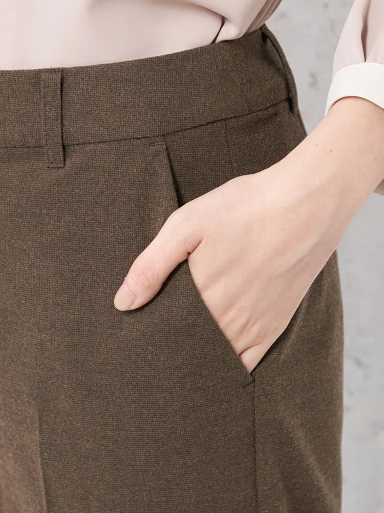 人気のデレガント社製の起毛素材を使用し、季節感を演出したパンツ。