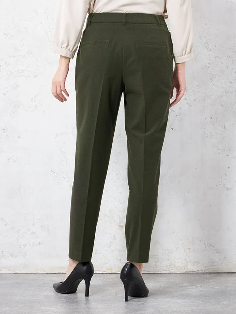 【UVカット&ウォッシャブル】デレガントテーパードパンツタック入りストレッチ無地SOFFICE【レディース】