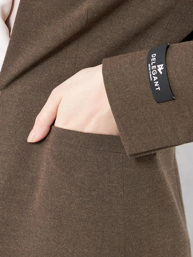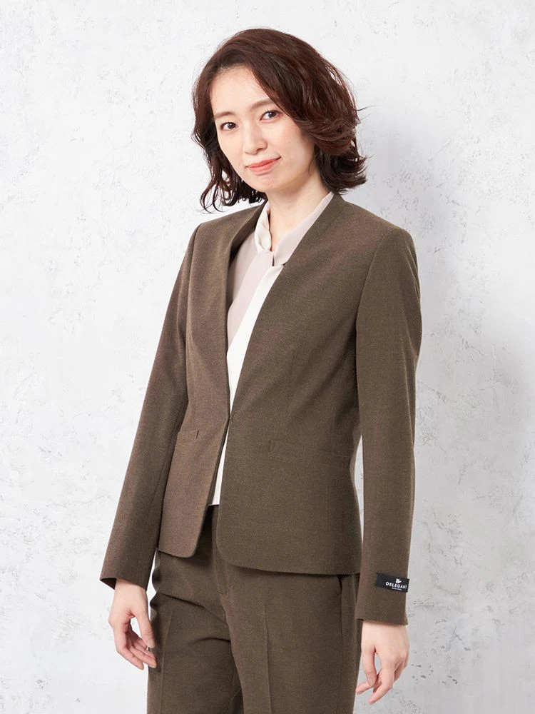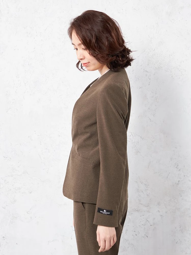 【DELEGANT】ジャケット ノーカラージャケット 起毛 ピンヘッド SOFFICE 秋冬【レディース】(ブラウン系)
