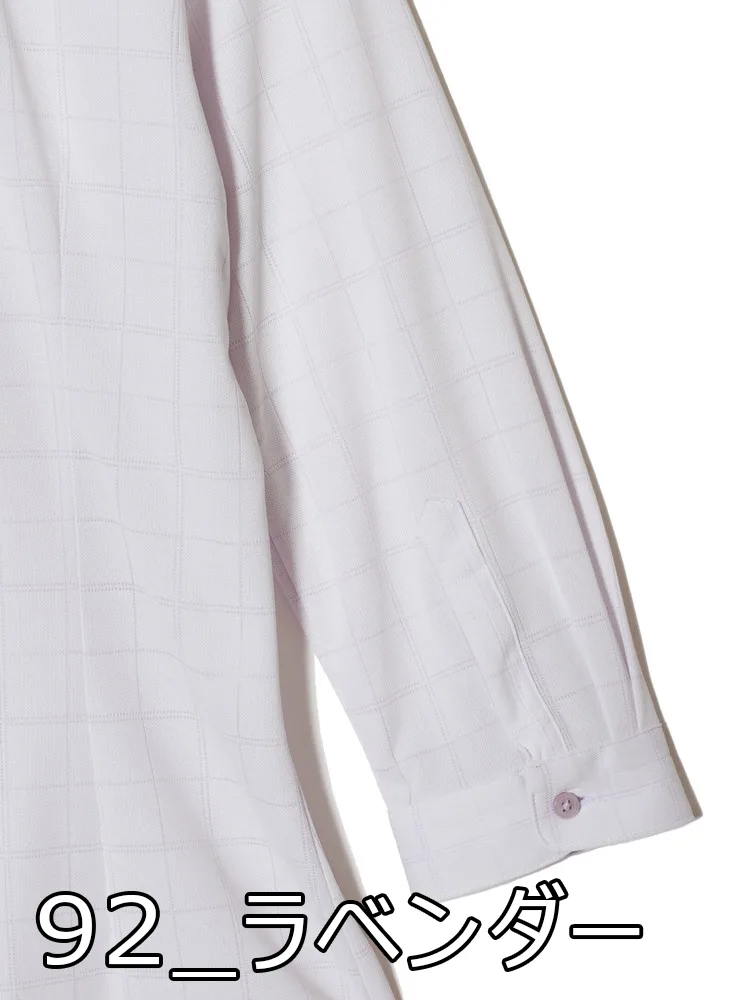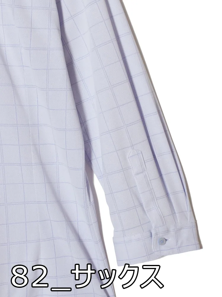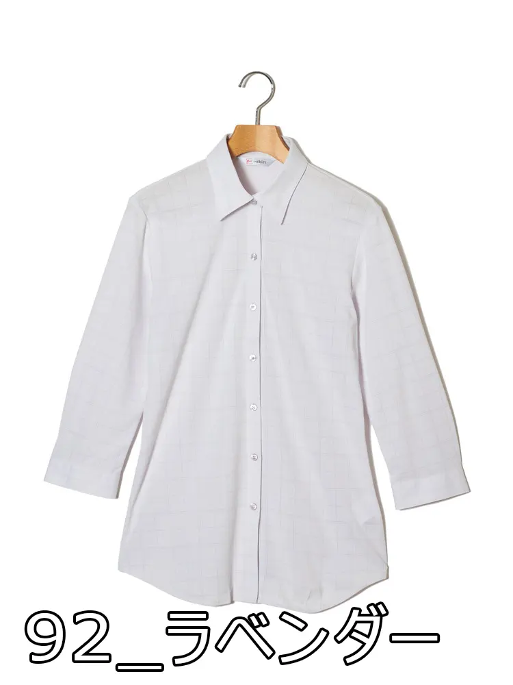【完全ノーアイロン】ブラウス 7分袖 レギュラー【アイスライブ】冷感 UVカット チェック ワイシャツ i-shirt 春夏【レディース】(サックス)