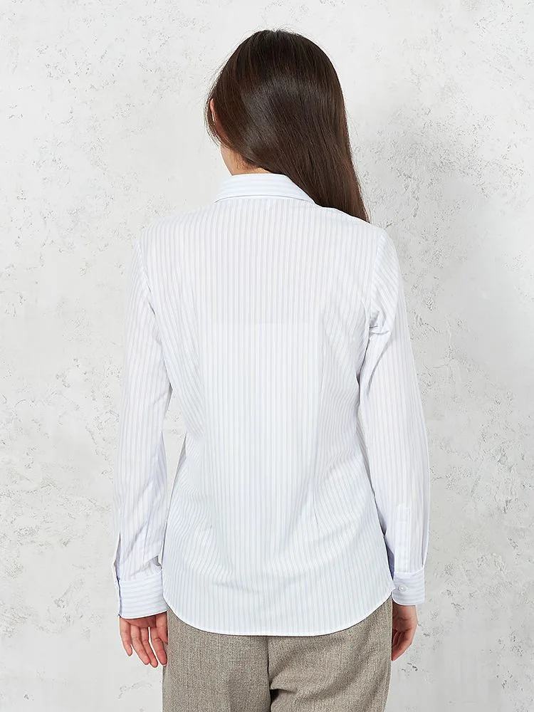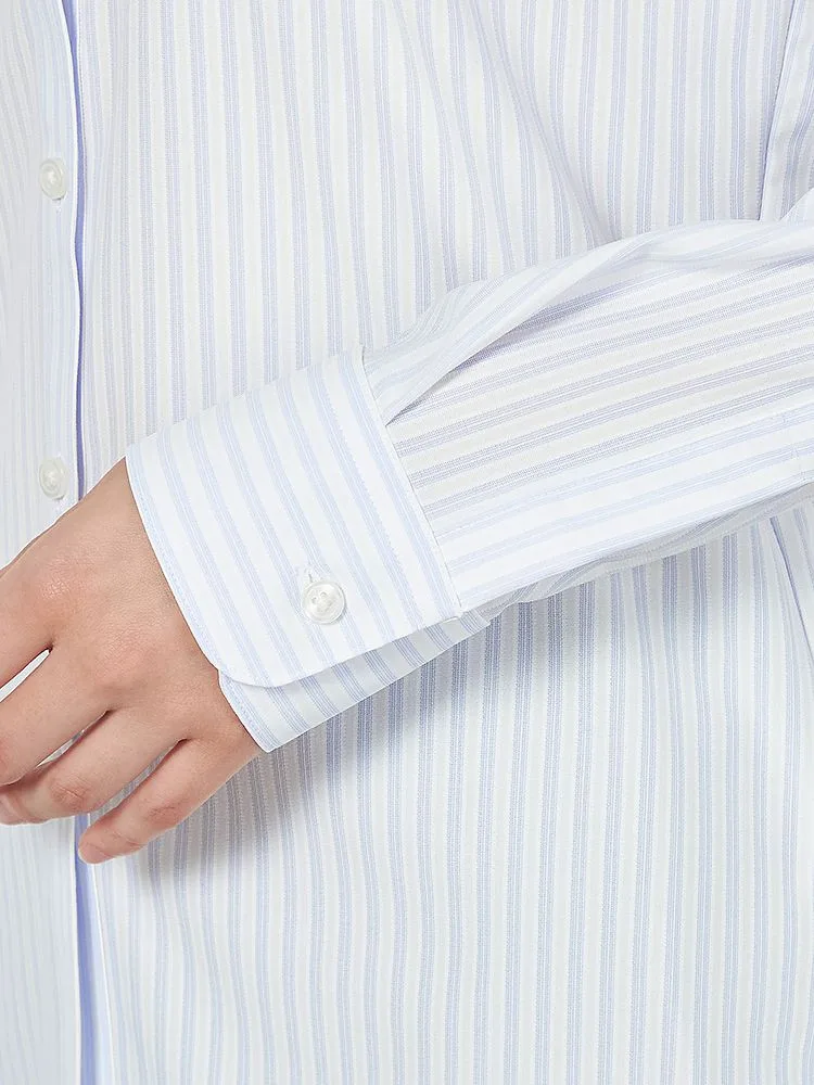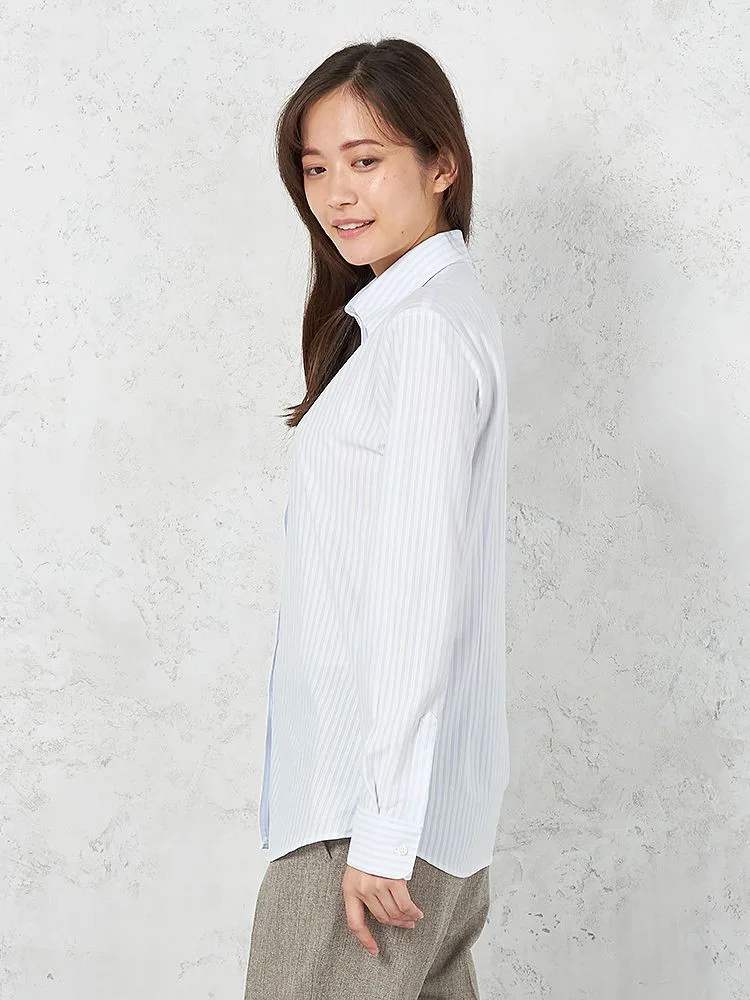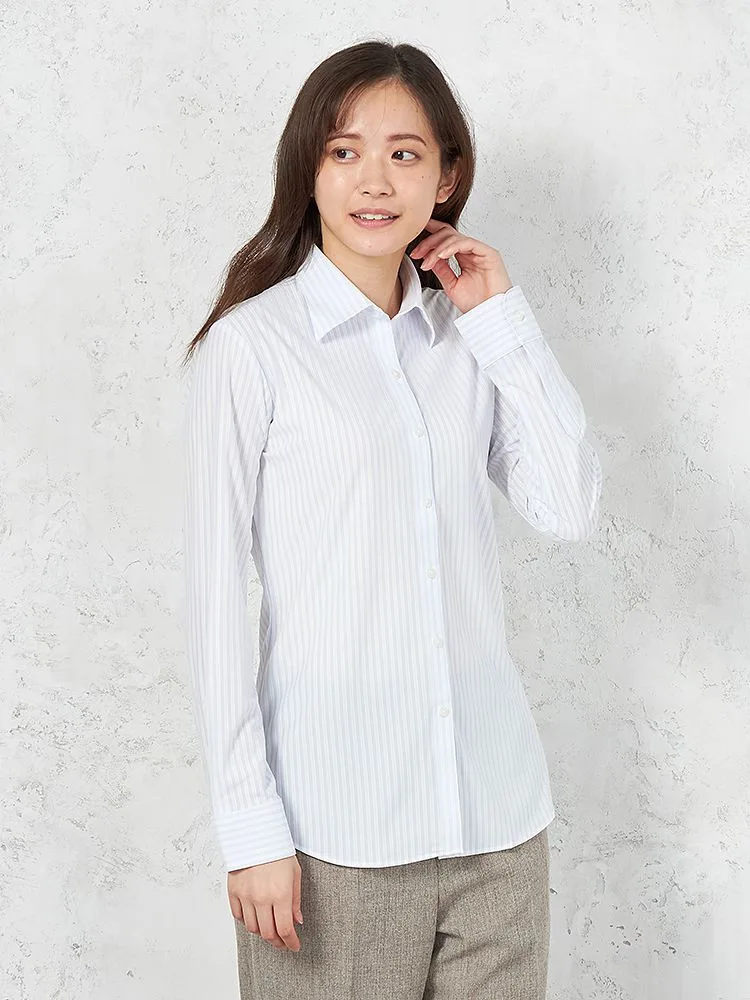 【ECO i-shirt】完全ノーアイロン 長袖 ブラウス スキッパー ストライプ 通年【レディース】