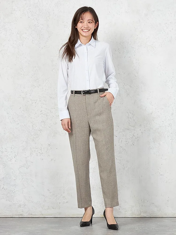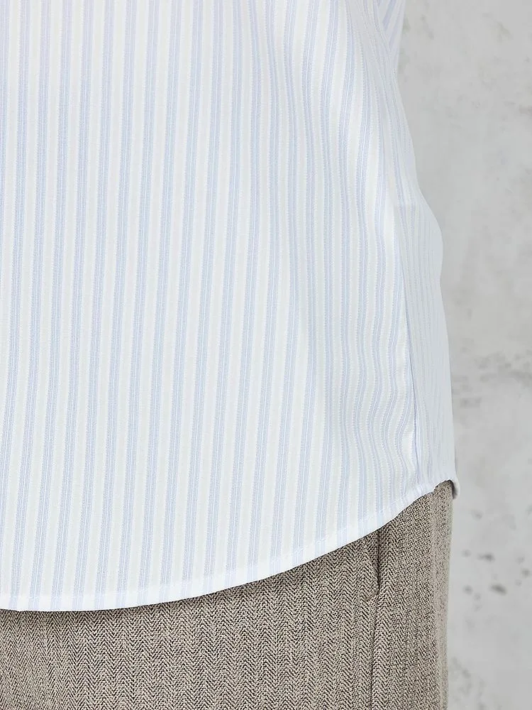 完全ノーアイロン機能付きで、忙しい朝でもシワを気にせずにそのまま着用できます。手間を省ける便利なアイテムです。