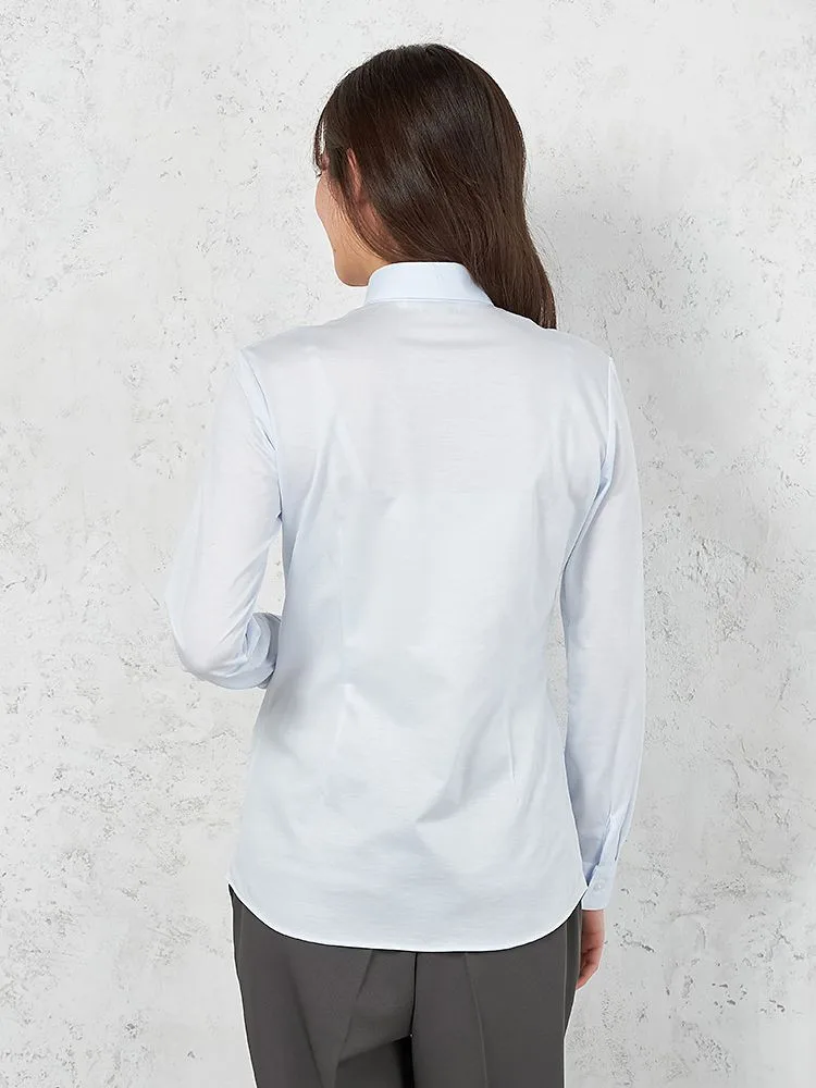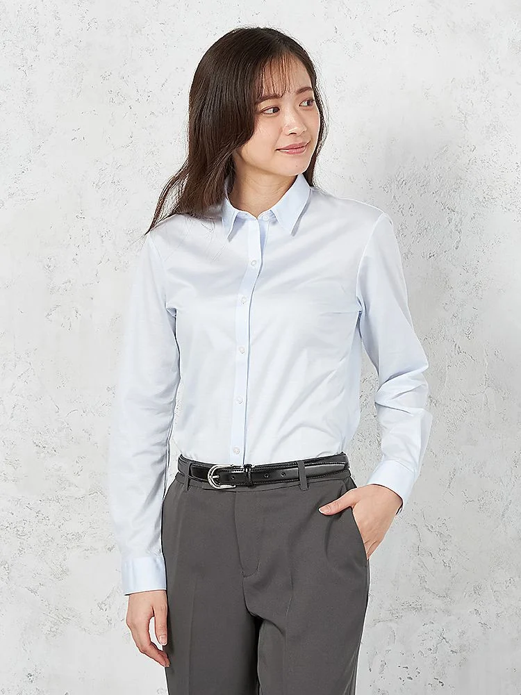 【ハイブリッドアイシャツ】長袖 ブラウス レギュラー 無地 綿混素材 形態安定 通年【レディース】