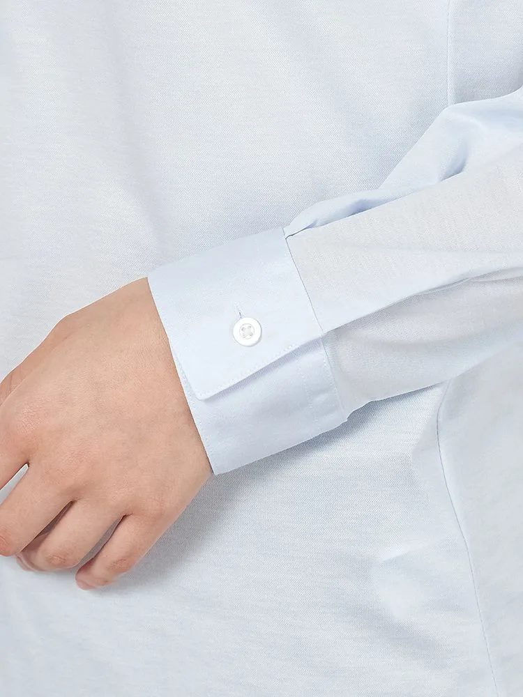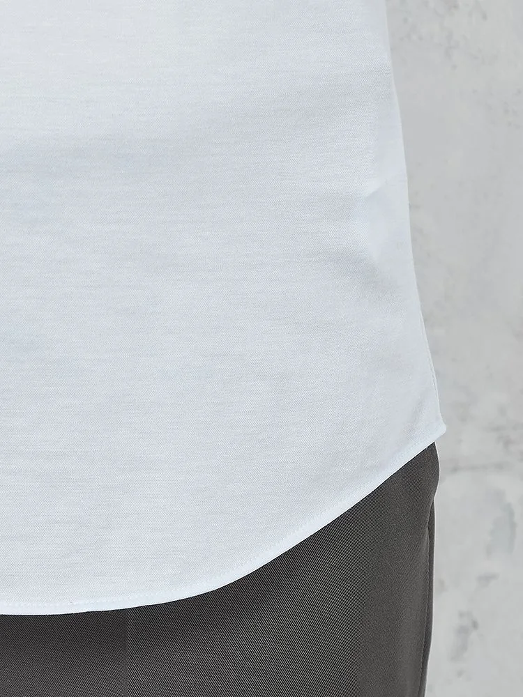 綿素材ワイシャツの風合いを表現した【ハイブリッドアイシャツ】。