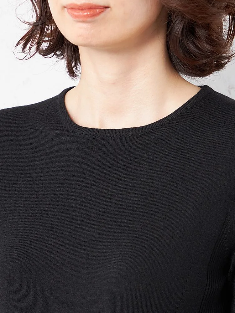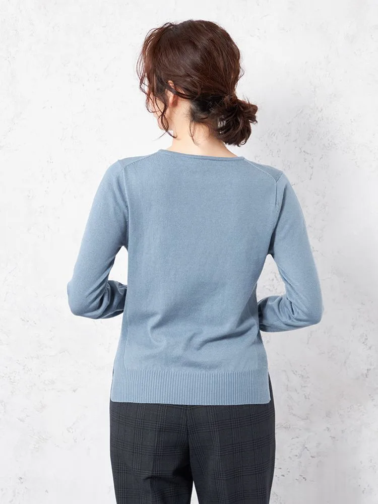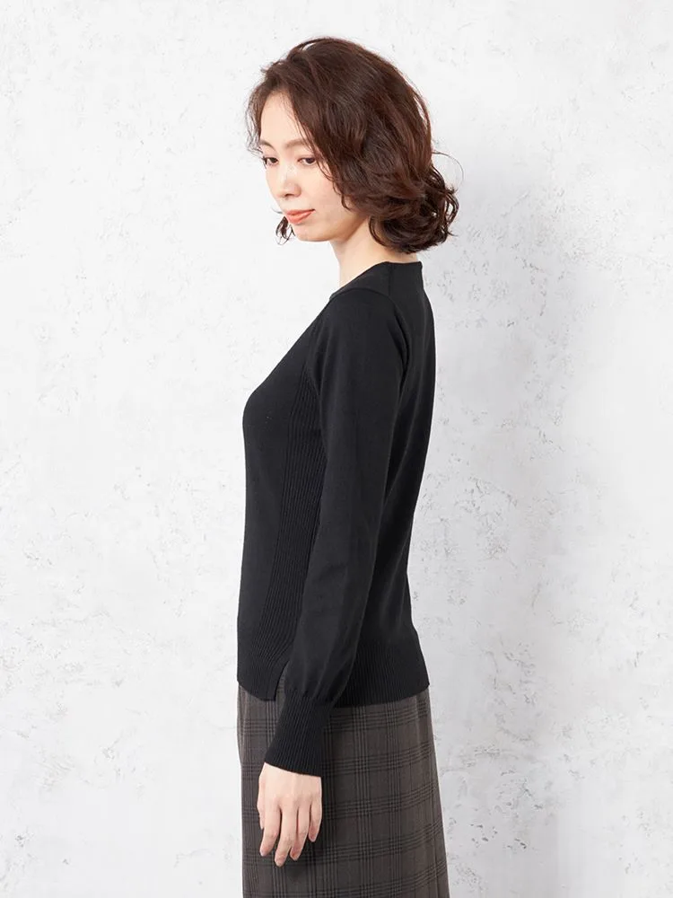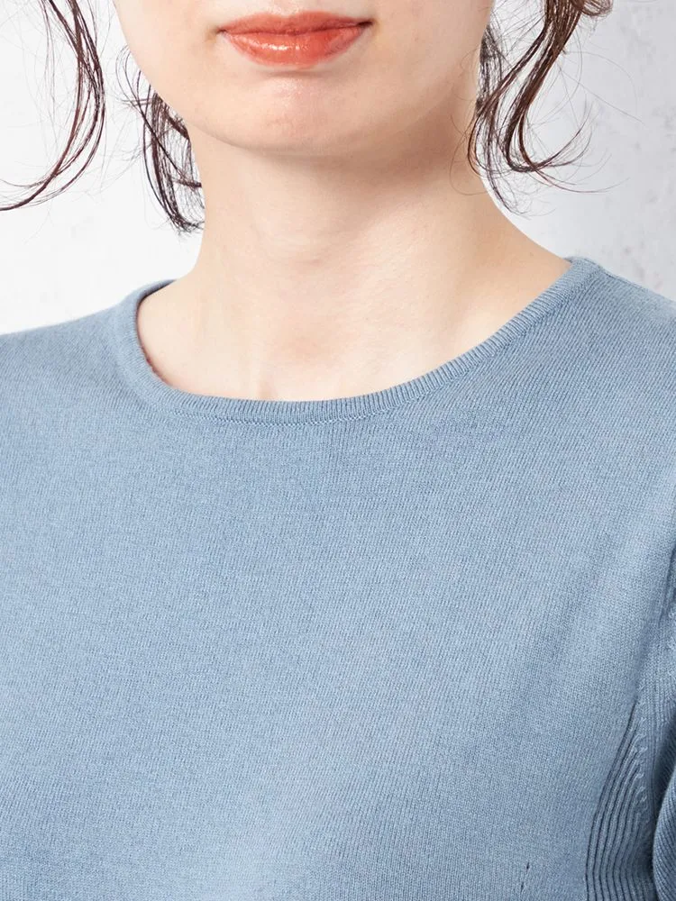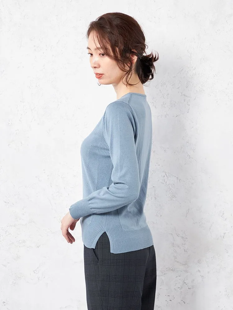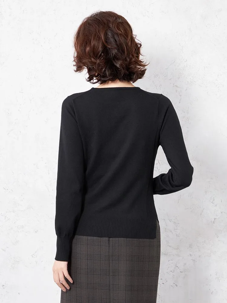 【アンチピリング&静電気対策】ニット長袖クルーネック袖パールウォッシャブル無地SOFFICE秋冬【レディース】
