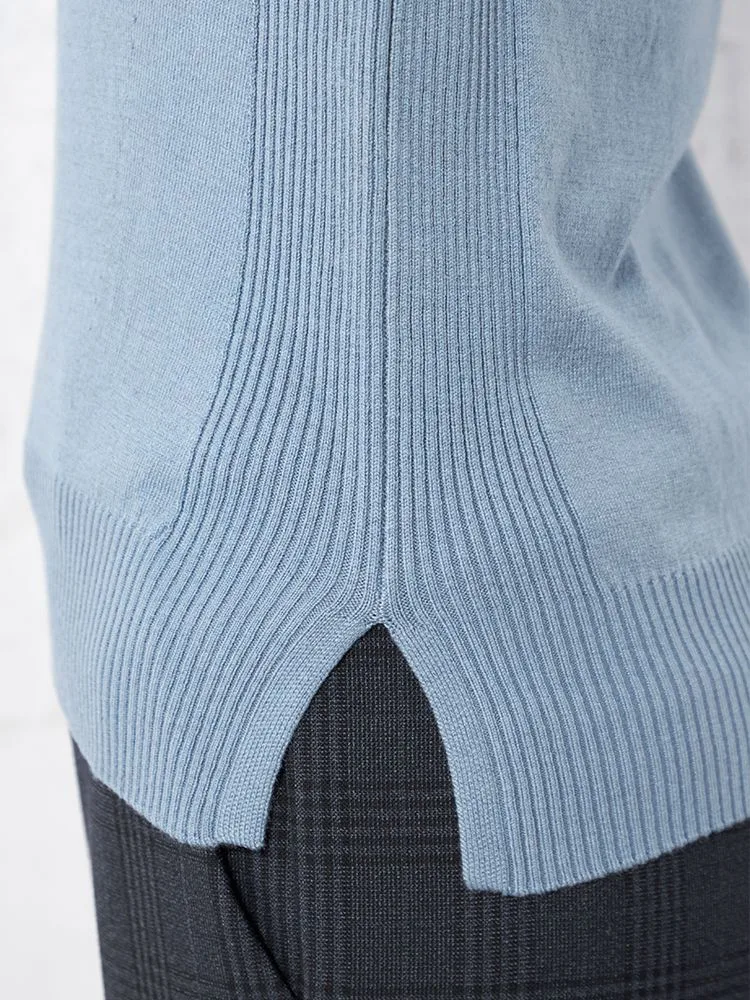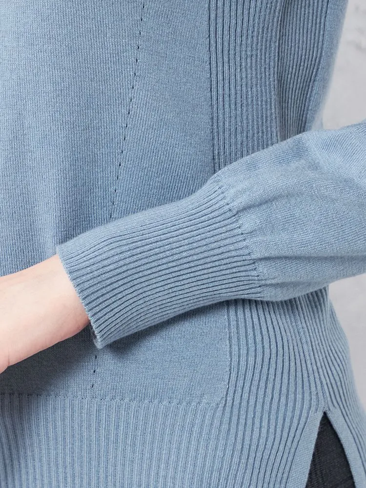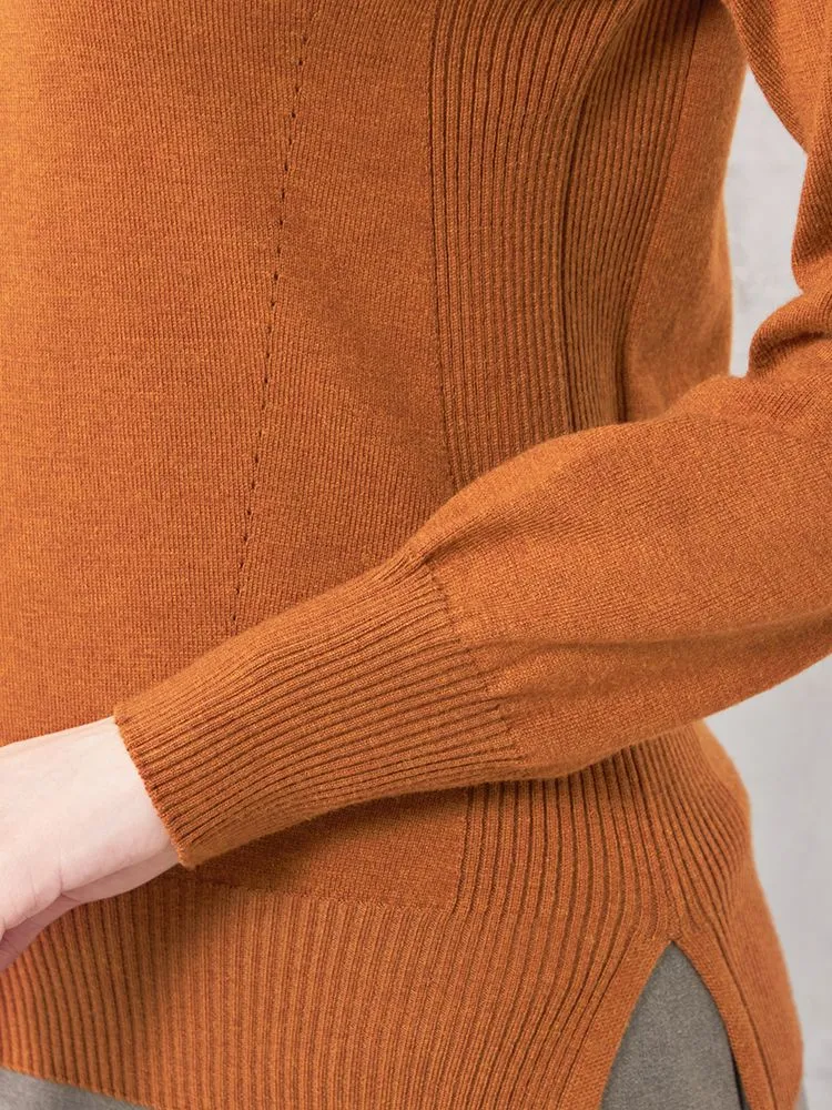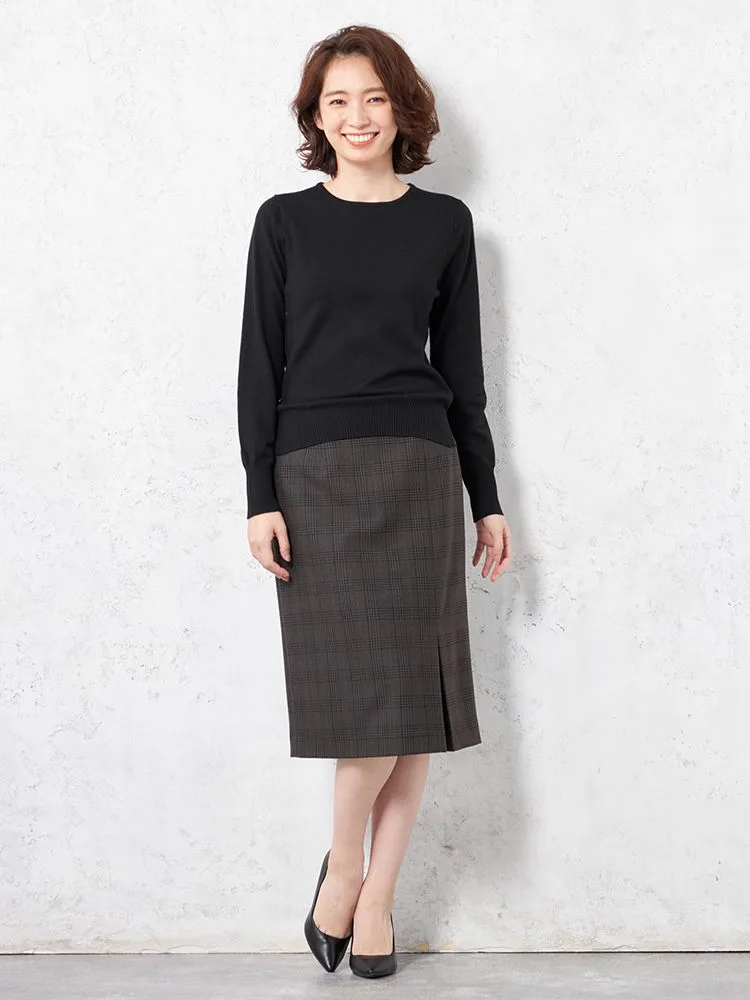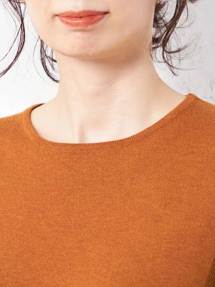 どんなアイテムとも相性の良い、シンプルな単色ニットプルオーバー。