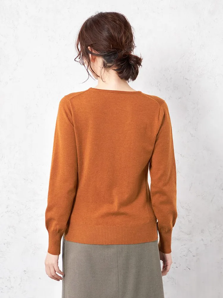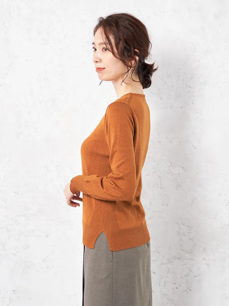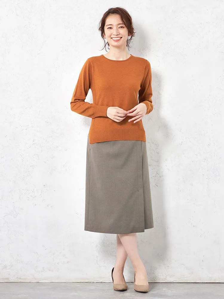 【ウォッシャブル】セーター 長袖 クルーネック ウール混 無地 SOFFICE 秋冬【レディース】(オレンジ)