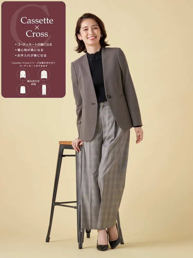 【Cassette Cross】パンツ ワイドパンツ ウォッシャブル ストレッチ チェック SOFFICE 秋冬【レディース】