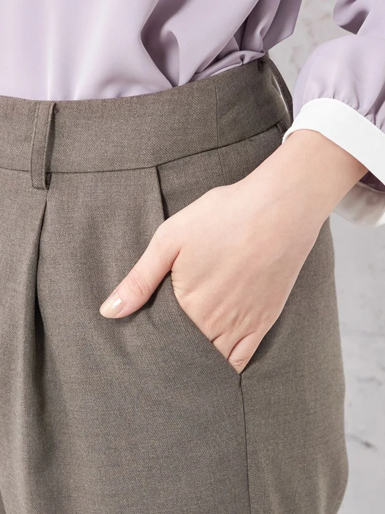 ウエストにタックとギャザーを施して、腰回りに程よいゆとりとフィット感を持たせています。