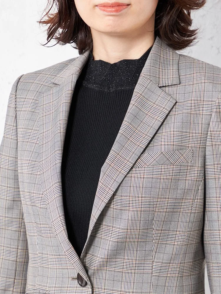 【Cassette Cross】ジャケット 1つボタンジャケット ウォッシャブル ストレッチ チェック SOFFICE 秋冬【レディース】