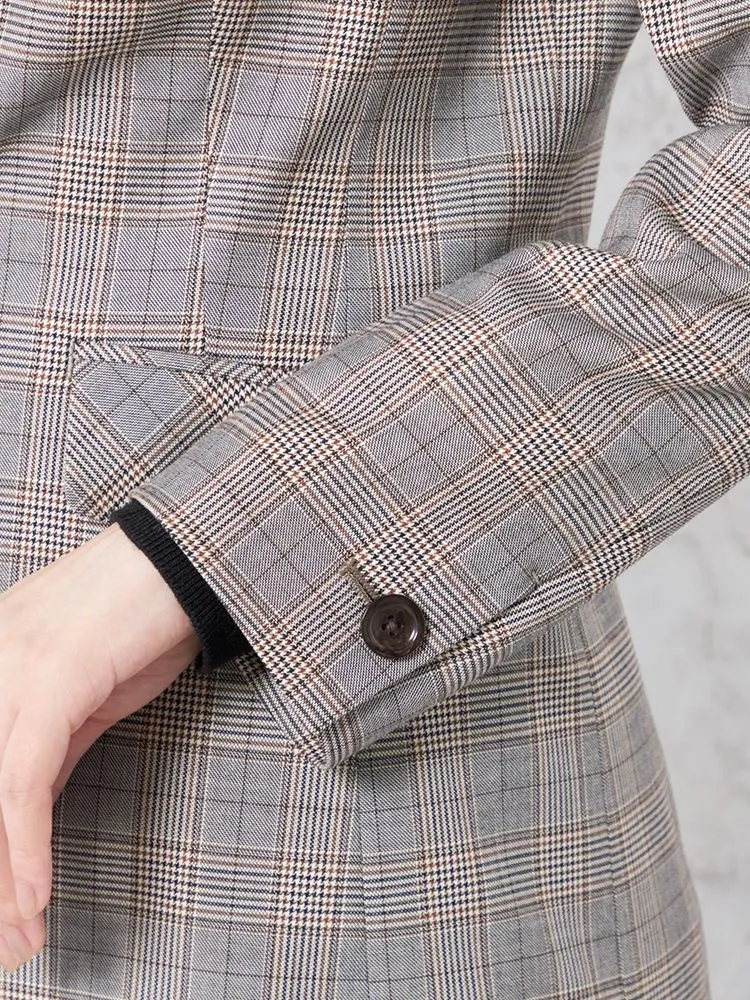 フランス「DELEGANT/デレガント」社が企画した、トレンド感ある色柄が魅力のチェック柄1つボタンジャケットです。