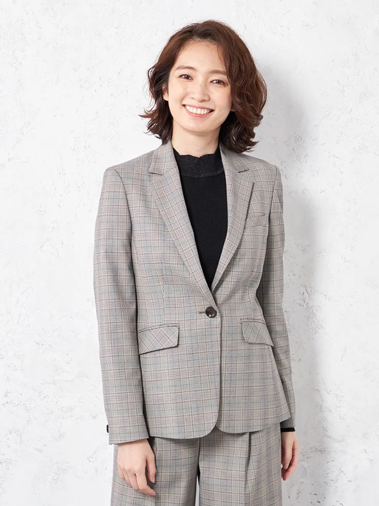 【働ラク肩ラクスーツ】ジャケット1つボタンウォッシャブルストレッチグレーチェックSOFFICE秋冬【レディース】