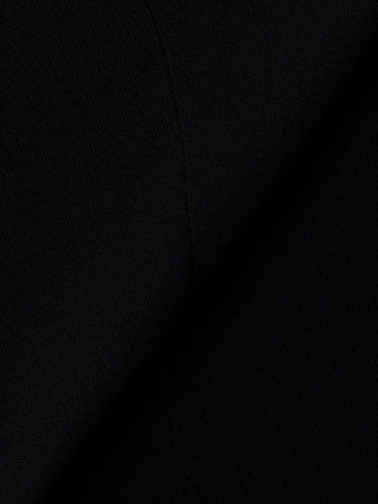 ジャケットは裾を艶めくサテンで切り替えて、エレガントさをプラス。